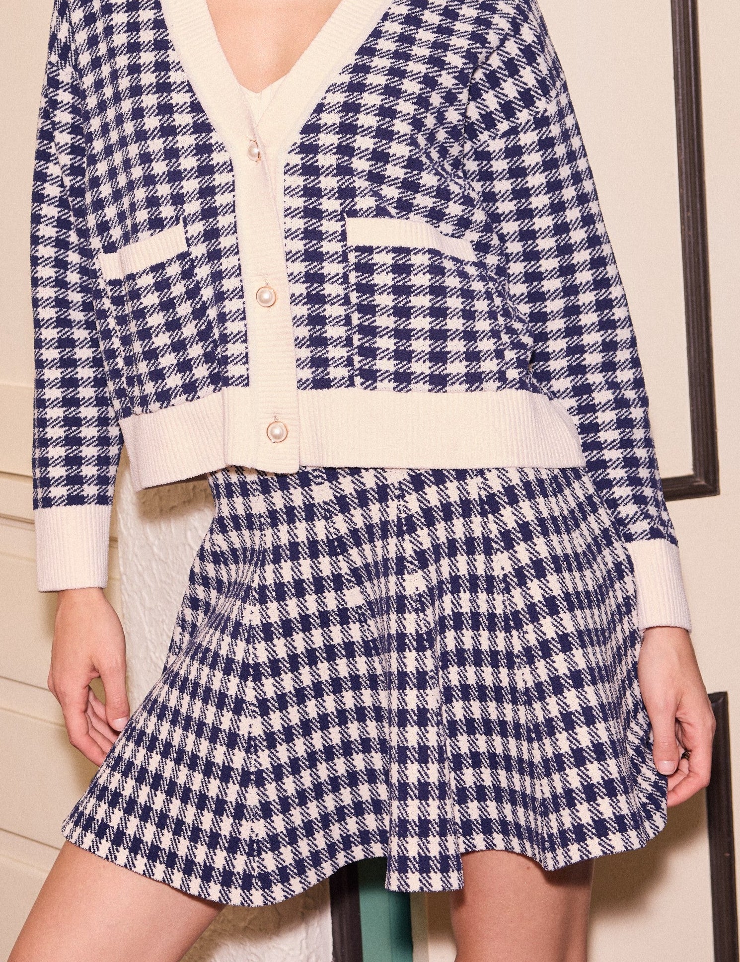 Lila Houndstooth Knit Mini Skirt