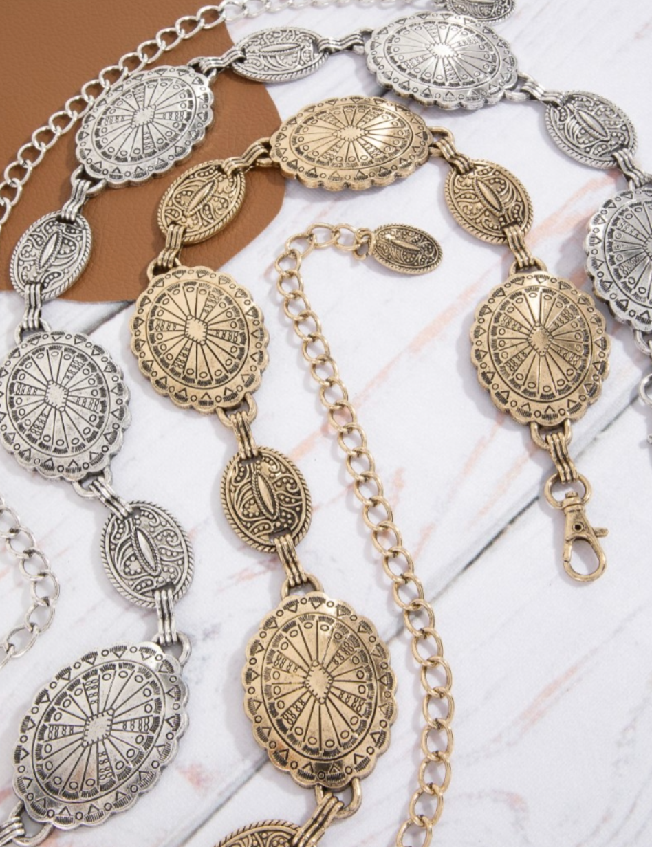 Ornate Oval Western Concho Disc Chain Belt