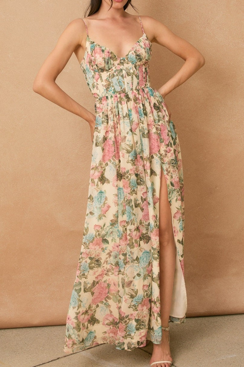 Gilded Ballroom Corset Flowy Maxi Dress