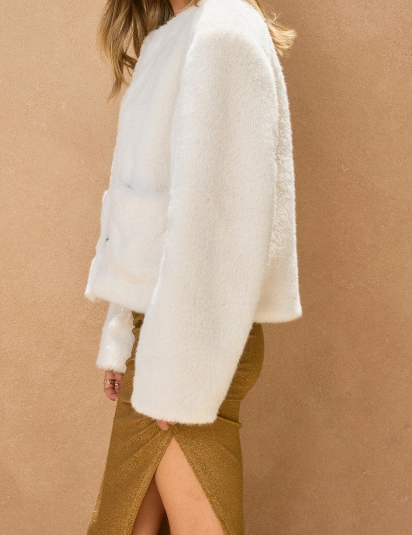 Wind Whispers Faux Fur Patch Pocket Jacket