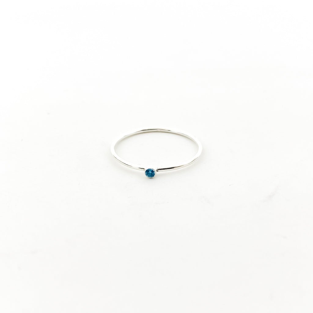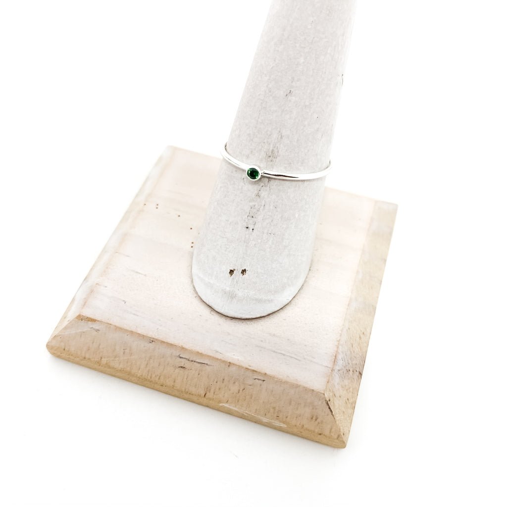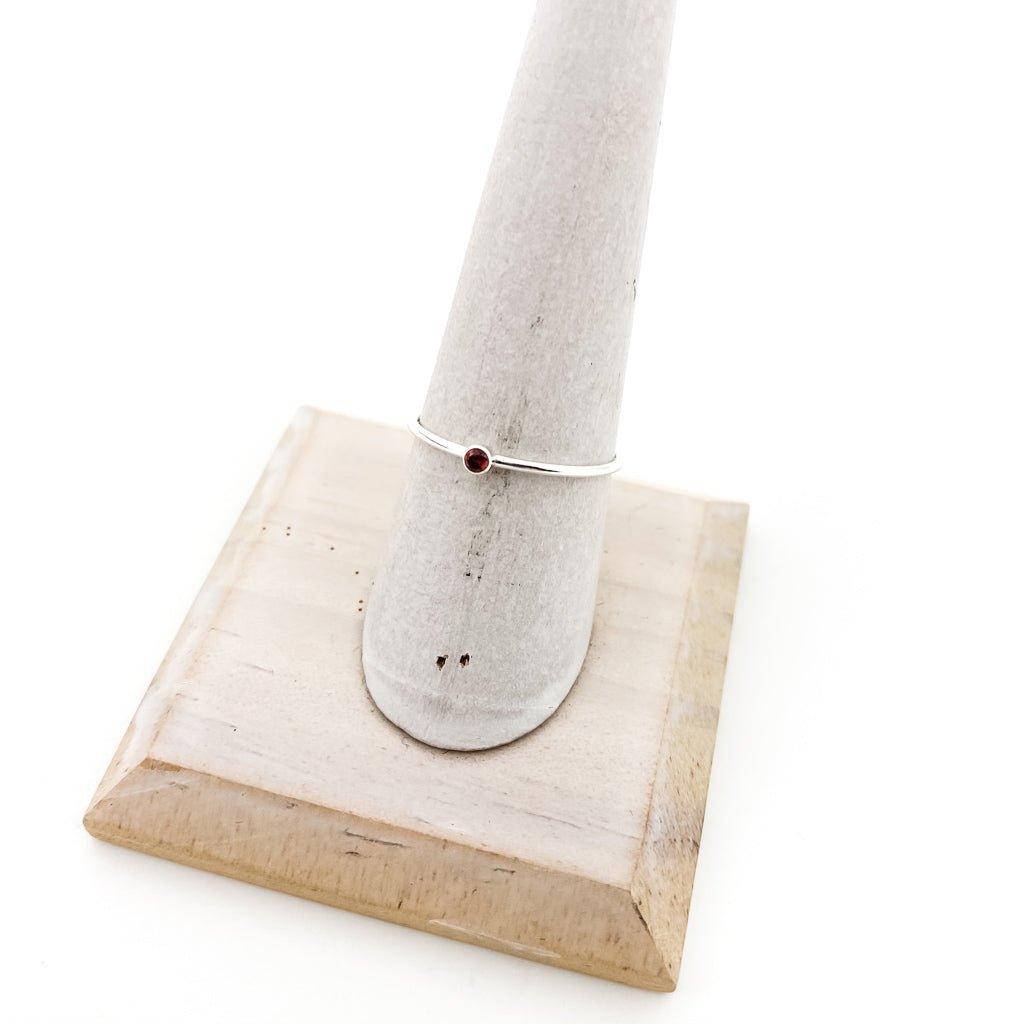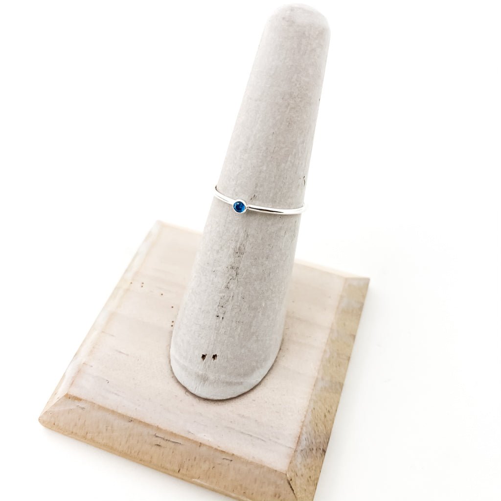 Elevate your everyday style with our Bella Birthstone Stacking Ring in sterling silver. This delicate 1mm ring showcases a shimmering 2mm round birthstone, perfect for stacking or wearing solo. Choose your own birthstone or stack multiple rings to represent each of your children.