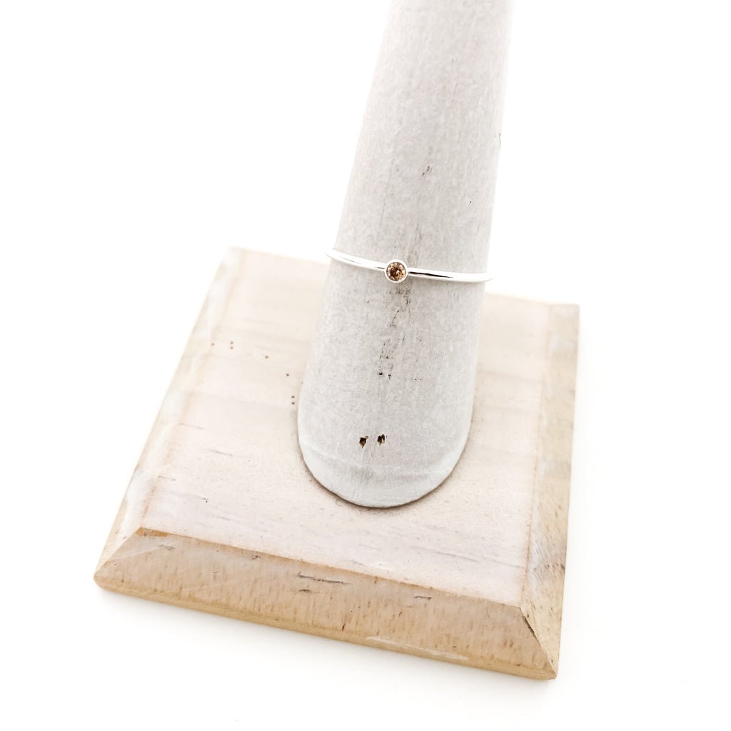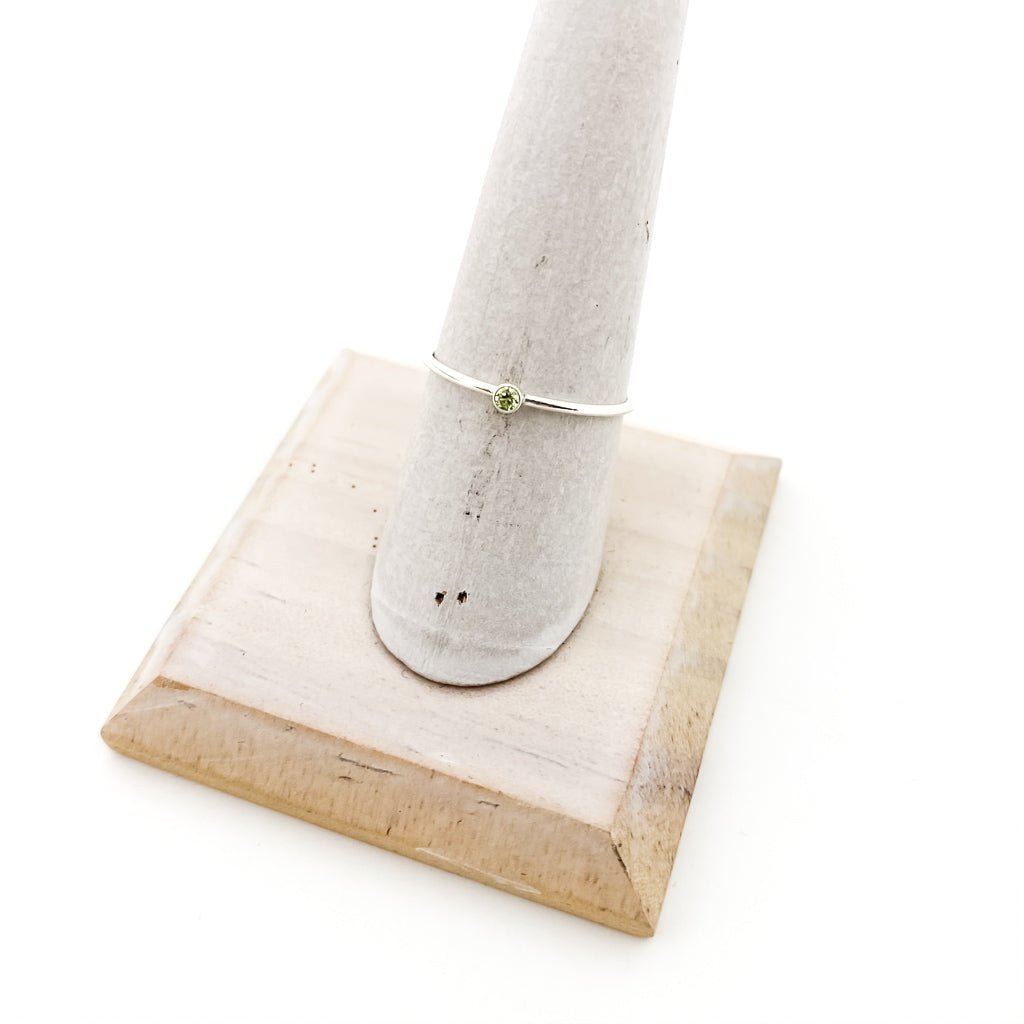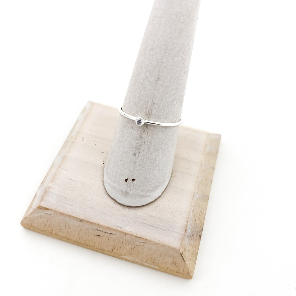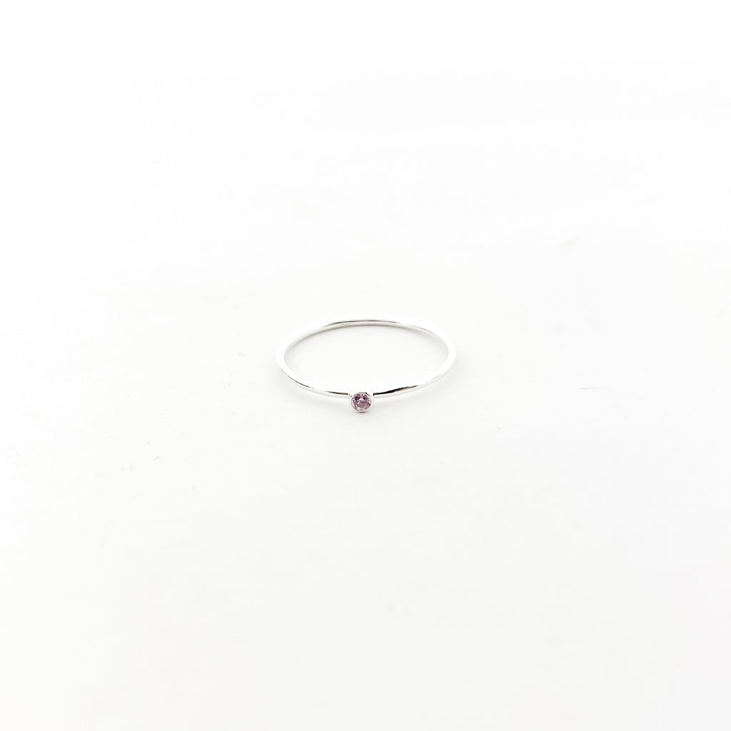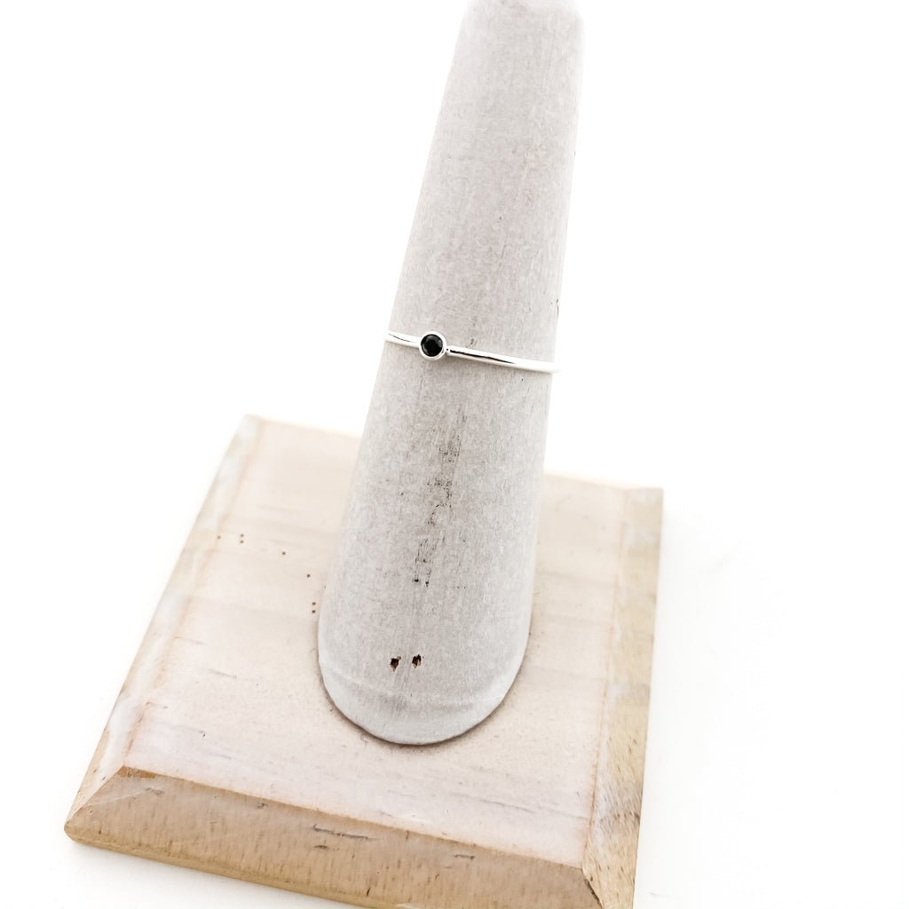 Elevate your everyday style with our Bella Birthstone Stacking Ring in sterling silver. This delicate 1mm ring showcases a shimmering 2mm round birthstone, perfect for stacking or wearing solo. Choose your own birthstone or stack multiple rings to represent each of your children.