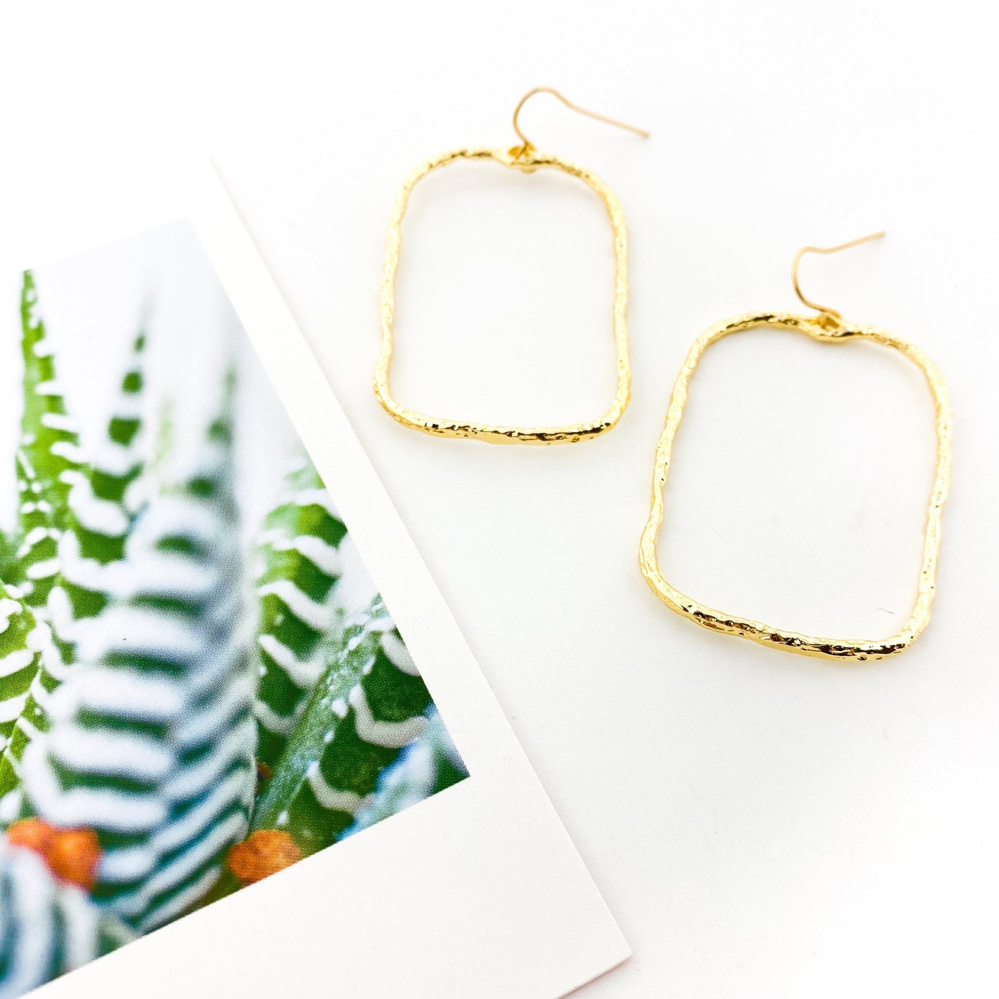 Treat yourself to these stunning earrings and elevate any outfit with their timeless beauty! Each pair features 14K gold-filled or sterling silver hooks and pendants, ensuring both quality and style. And with nickel-free earrings, you can wear them all day without any discomfort. Make a statement and feel confident with the Mira Twisted Hammered Wide Rectangle Earrings.