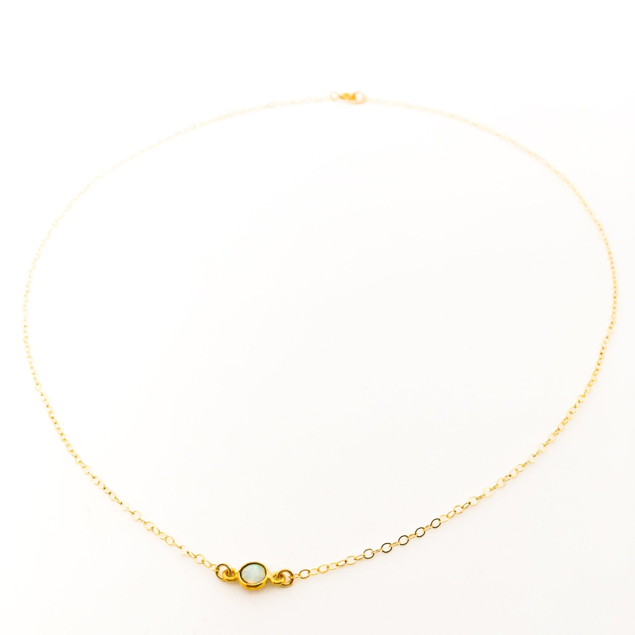 Our 16" 14k gold-filled necklace features a stunning lab opal pendant, adding a touch of elegance to any outfit. With its durable chain and eye-catching stone, the Aurora necklace is perfect for any occasion. Elevate your wardrobe with this timeless piece.