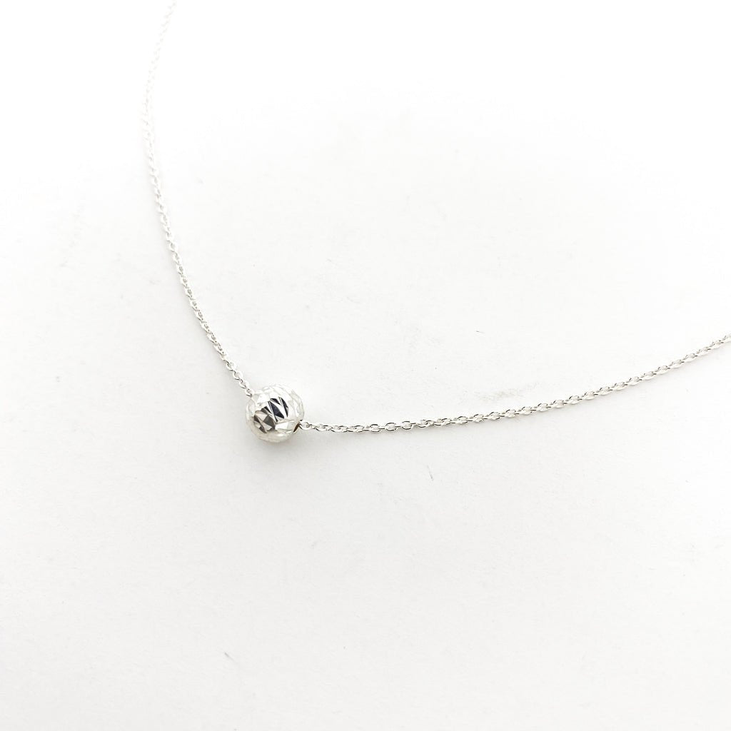 This 16-inch sterling silver necklace features a delicate .25-inch textured sphere charm, offering a subtle yet elegant touch to any outfit. Crafted from high-quality sterling silver, it provides lasting shine and durability. Its simple design makes it perfect for everyday wear or layering, adding a refined accent to your look with ease.