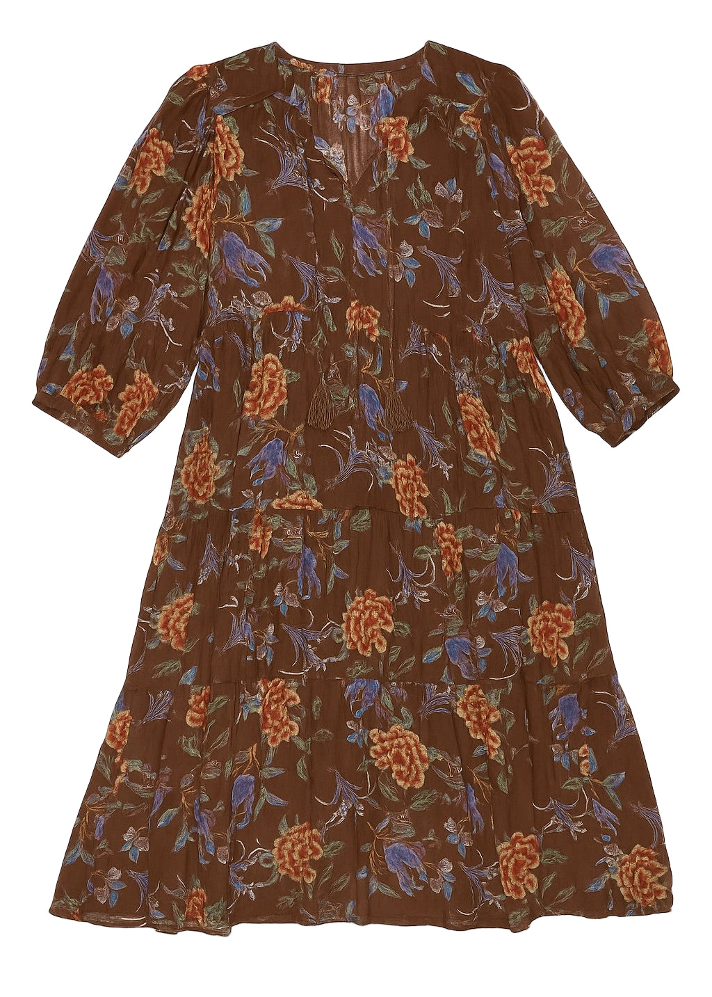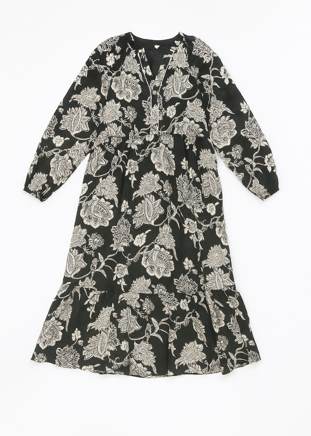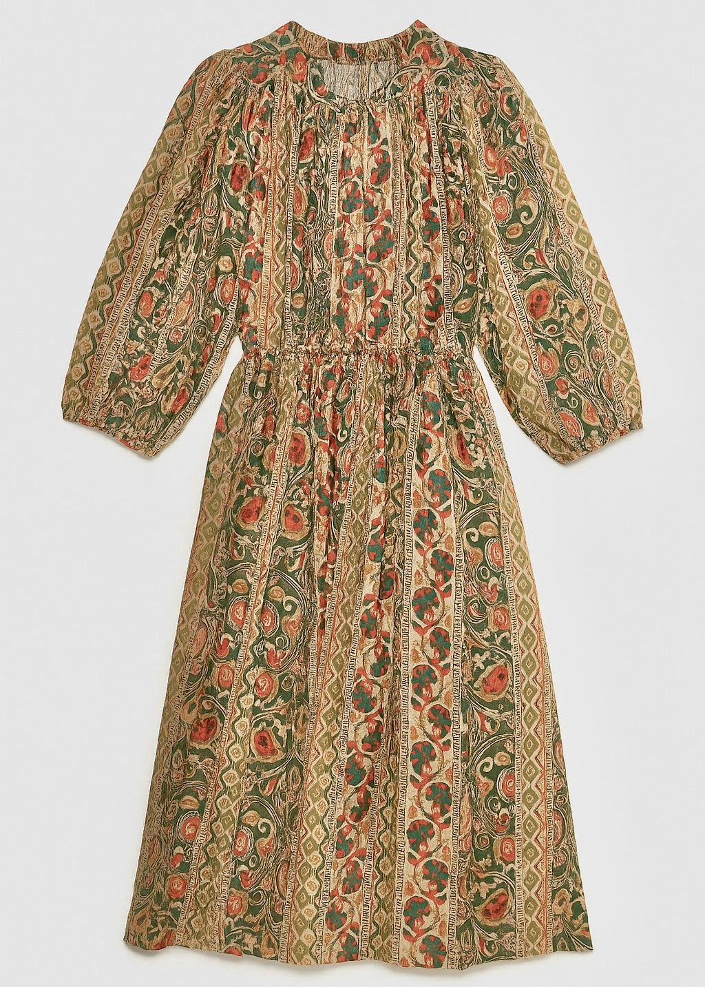 Justine Striped Fitted Ruched Bodice Midi Dress