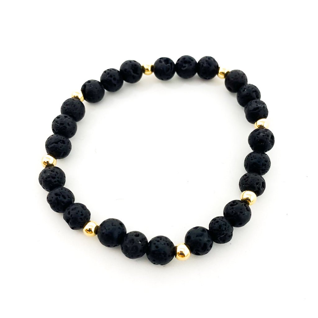 Gold Accented Triple Lava Stone Bracelet | 6mm