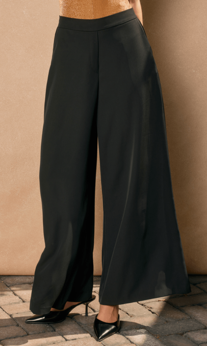 Meet your new go-to: the Esmerelda Extra Wide Leg Pants. These pull-on wonders feature an elasticized back waistband that hugs you in all the right ways, while the dramatic extra-wide legs make a statement. Unlined for a lightweight feel, they're crafted from a polyester-spandex blend that moves with you. Whether you're dressing up or keeping it casual, these pants deliver that coveted relaxed-yet-refined vibe that defines modern style.