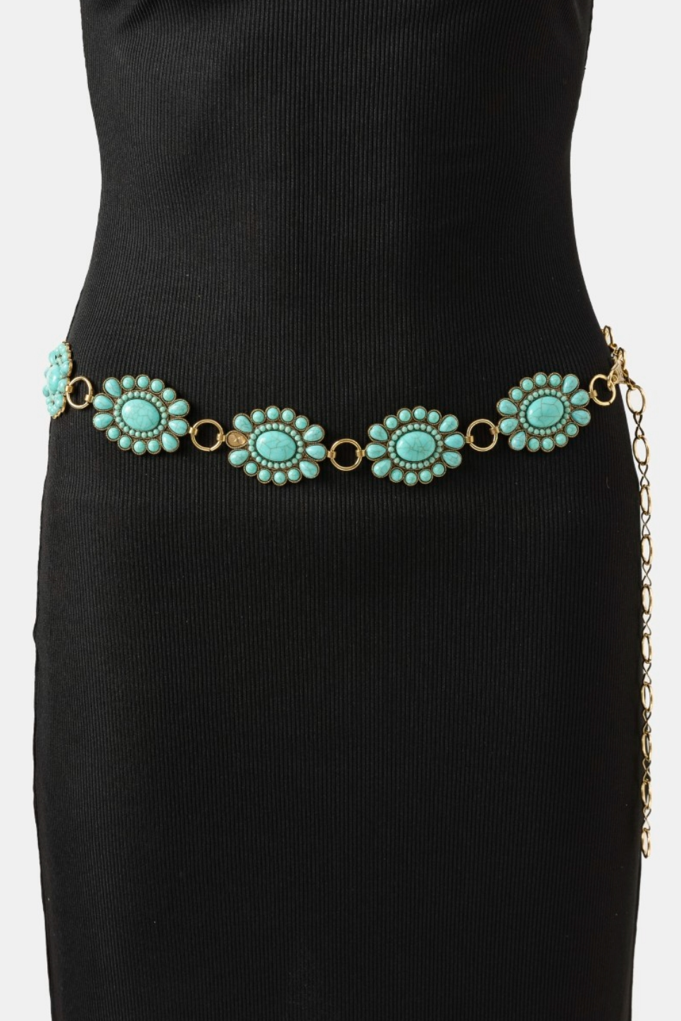 Gael Western Turquoise Stone Bead Concho Disc Chain Belt