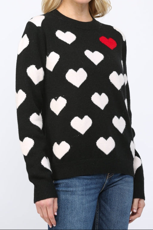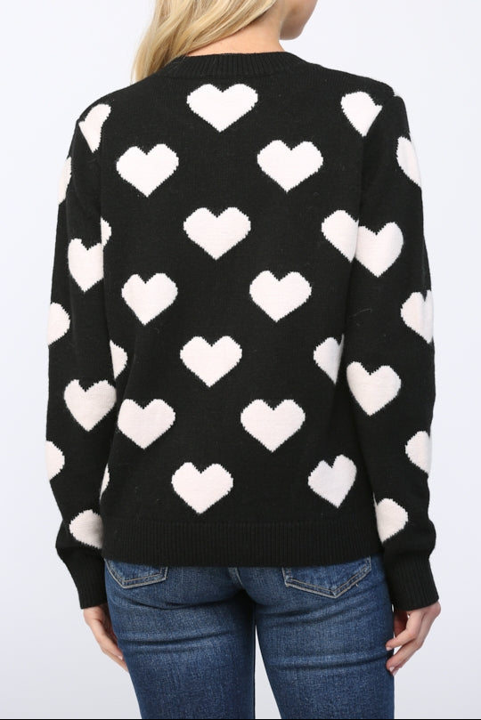 Wrap yourself in warmth and style with this charming heart pattern crewneck. Featuring an all-over design of delicate hearts, this piece celebrates love and connection in the most wearable way. The classic crewneck silhouette offers timeless comfort for everyday wear, whether you're layering it up or wearing it solo. Perfect for expressing your softer side while staying cozy and put-together. A versatile staple that brings a touch of sweetness to any wardrobe.