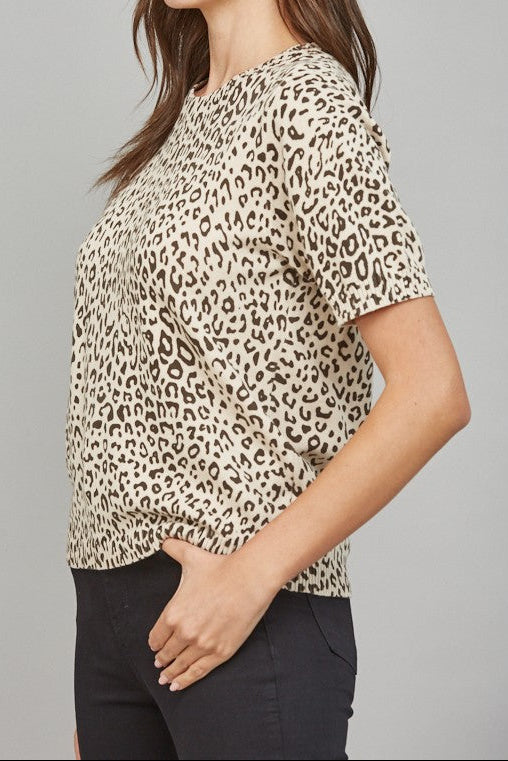 Paula Animal Print Short Sleeve Sweater Blouse