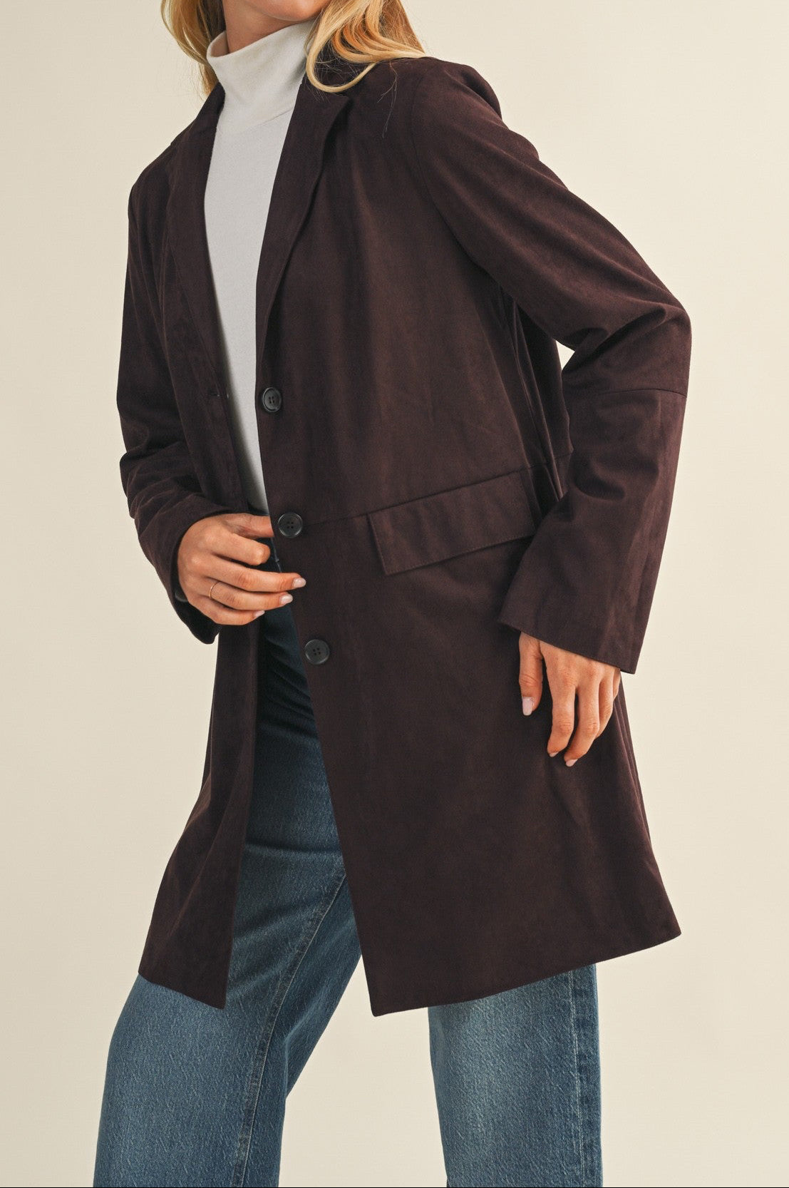 The Anne Tailored Collar Jacket brings sophistication to your fall rotation. Crafted in rich chocolate brown with a woven finish, this piece features a sharp tailored collar that elevates any outfit. Perfect for layering over basics or dressing up your weekend look, this jacket is a versatile wardrobe essential that transitions seamlessly from office to night out.