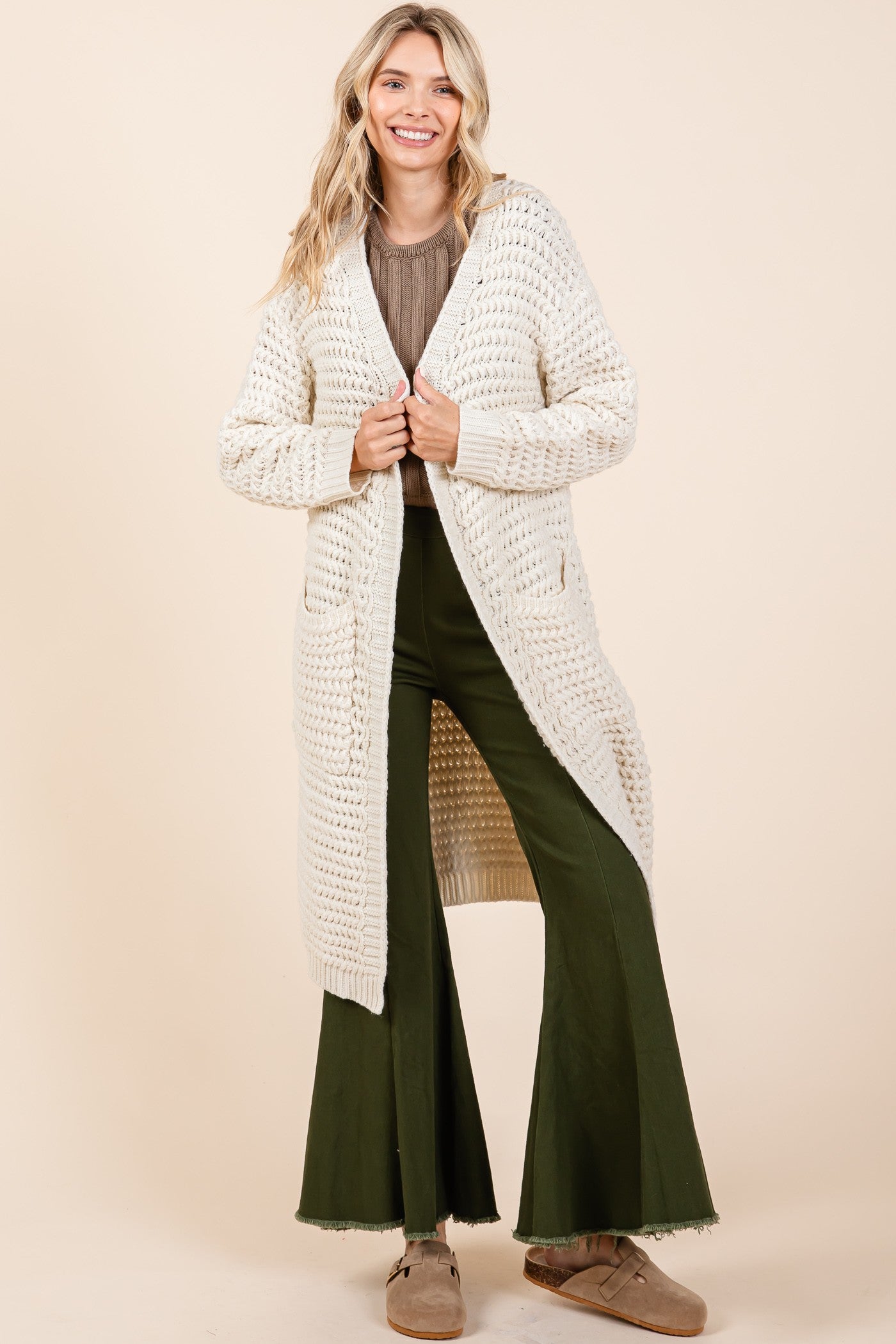 Cozy, casual, and effortlessly chic — the Aspen Waffle Knit Cardigan in Cream is your new layering essential for the cooler months. With its textured waffle knit and relaxed longline silhouette, this cardigan brings just the right balance of warmth and style to any outfit.