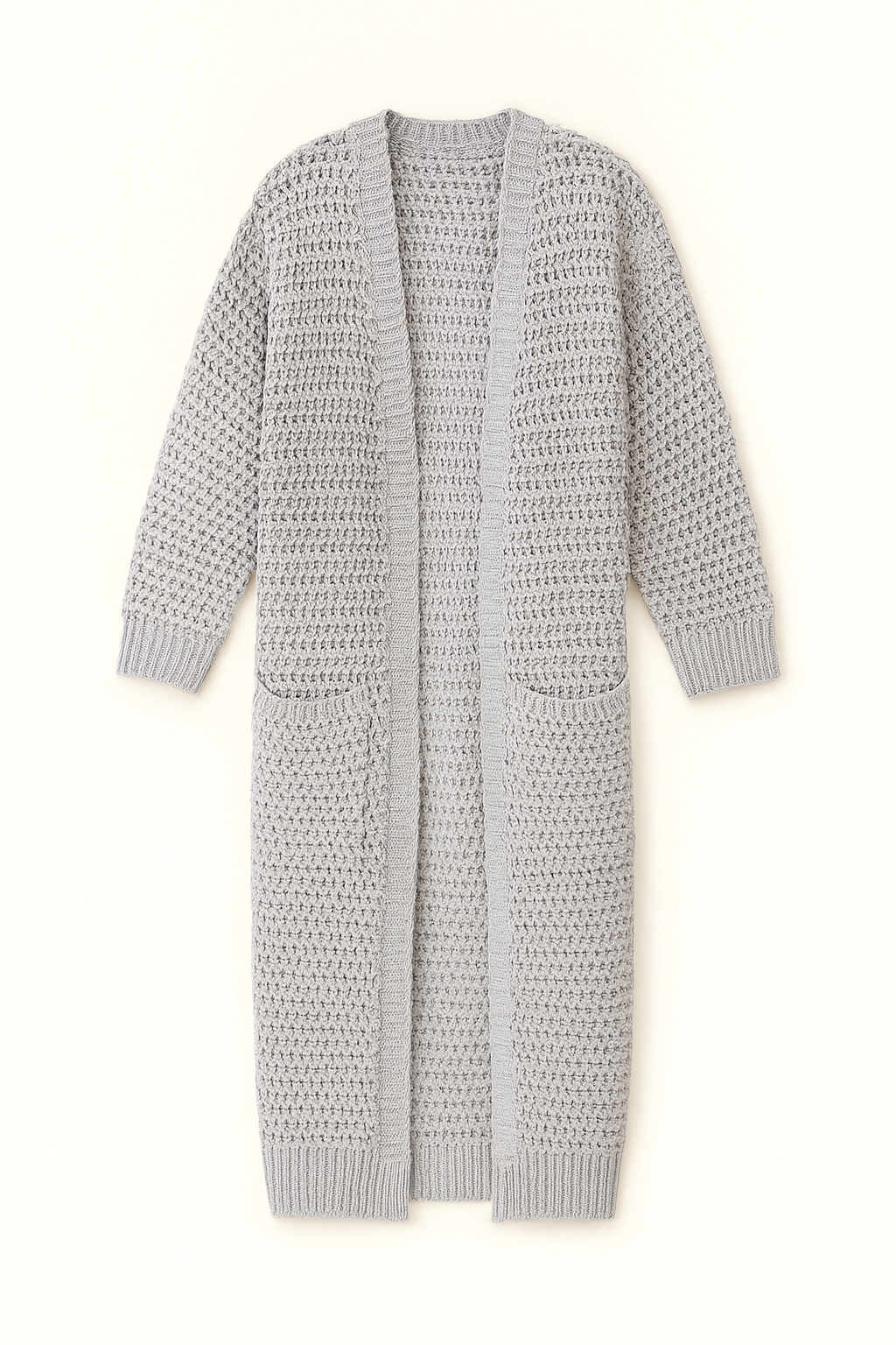 Designed with an open front and drop shoulders, it drapes beautifully for a laid-back yet polished look. The oversized patch pockets add both function and charm — perfect for slipping in your phone, keys, or simply keeping your hands warm on crisp mornings.