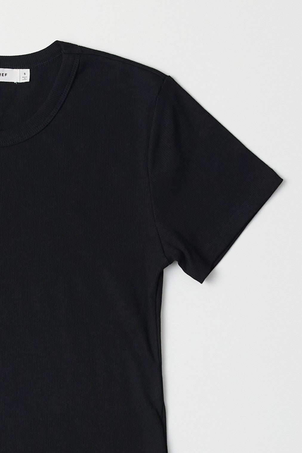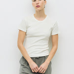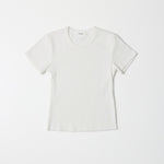 A short-sleeve ribbed tee made from a heavy-weight knit for a structured yet comfortable fit. Designed with a timeless round neckline, this versatile top pairs effortlessly with any wardrobe staple—from tailored trousers to casual denim.