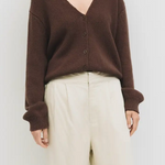 The Alma Cardigan is a cozy, oversized boucle knit designed for warmth and comfort. Its V-neckline and front button closure make it easy to wear, while the long sleeves and heavyweight texture provide a snug layer perfect for chilly days. Relaxed and inviting, it’s an ideal choice for adding a soft, stylish touch to your cool-weather wardrobe.