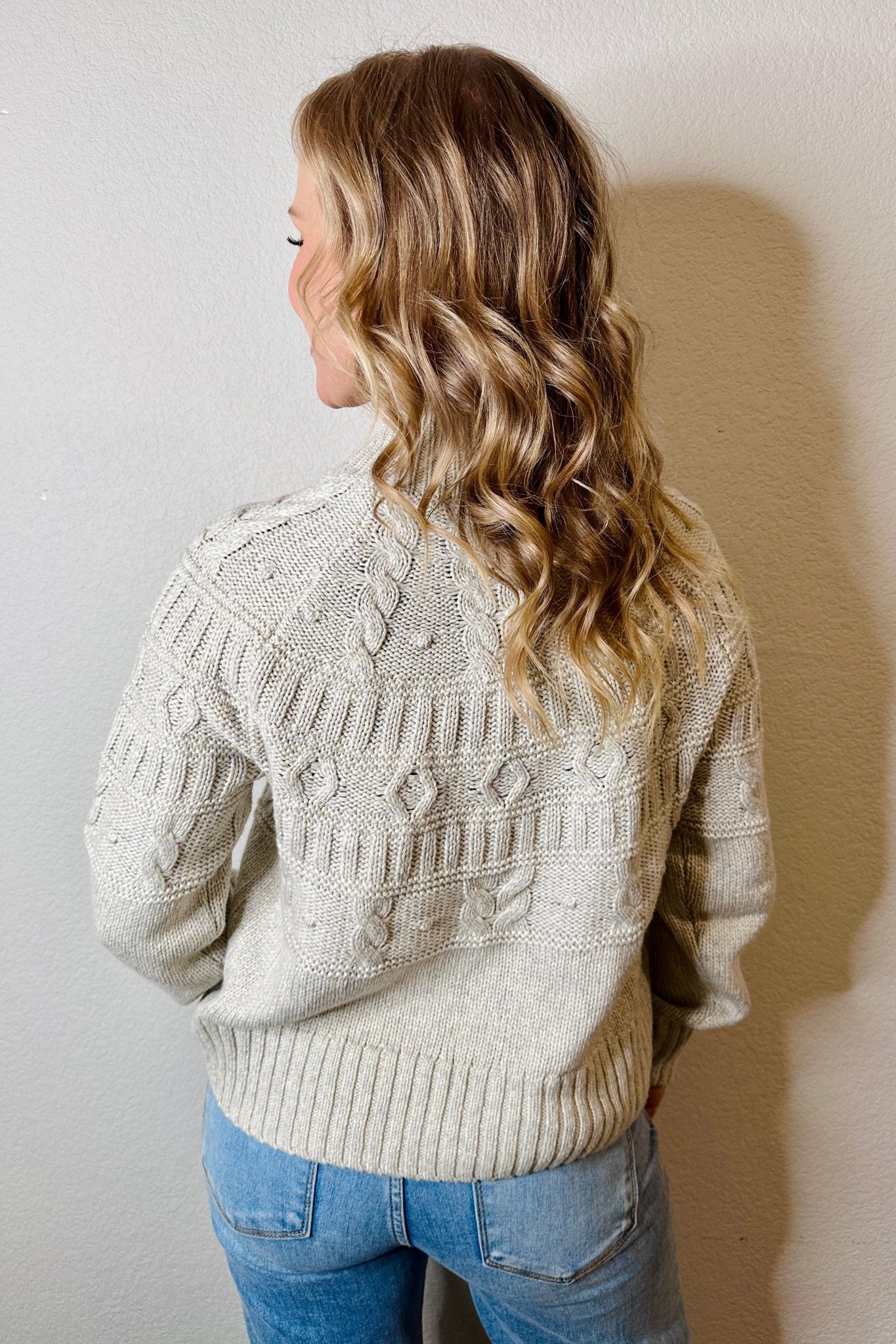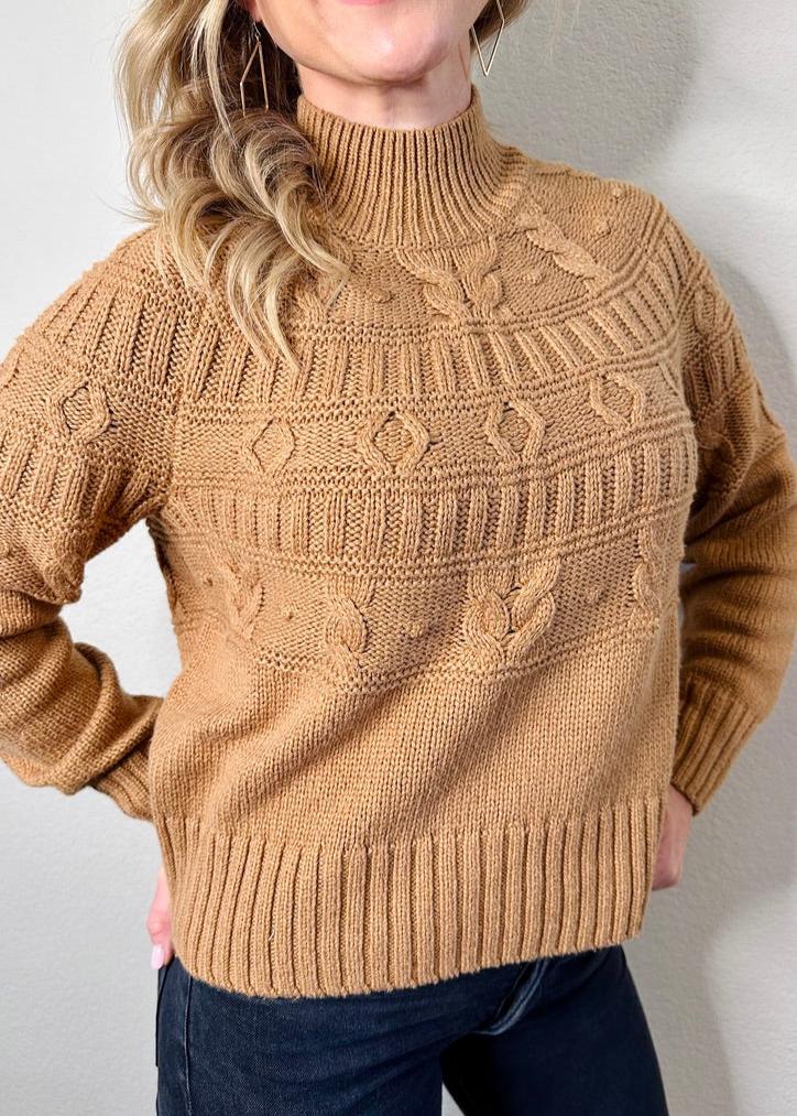 The Julie Highline Pom Mock Neck Sweater is perfect for winter getaways to the cabin. Made with a sustainable blend of wool, organic cotton, and recycled polyester, it features a rib mock neck, raglan long sleeves, and cable and pom knit details. Lycra in the neck, cuffs, and hemband provides better stretch and recovery. Layer it over any tee or tank for a cozy and eco-friendly look.