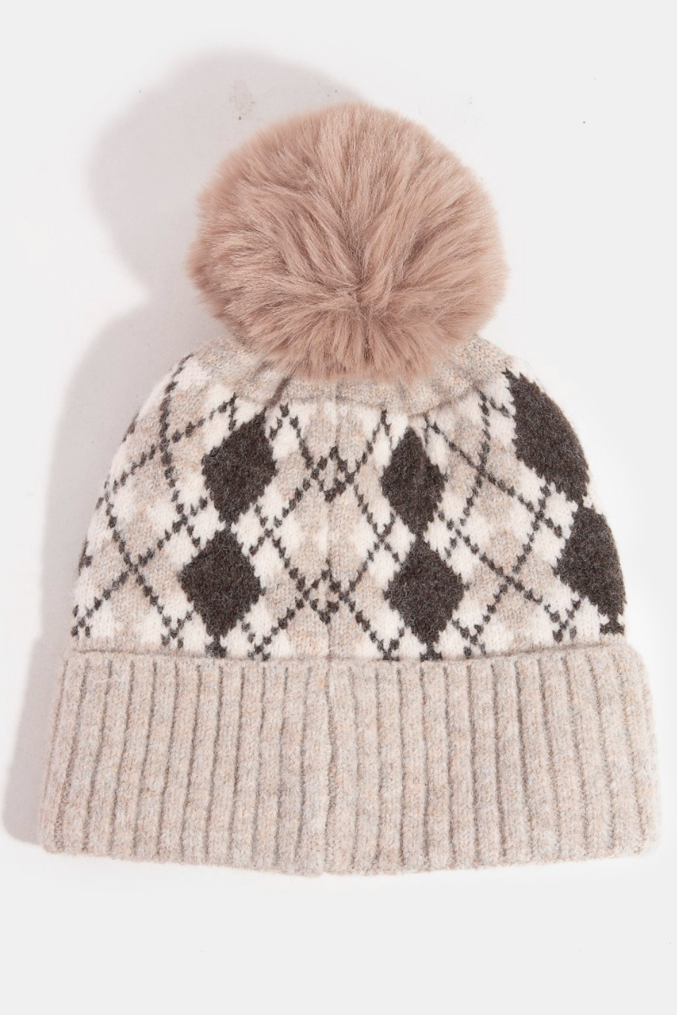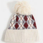 Elevate your winter wardrobe with the Blair Argyle Knit Pom Beanie—a contemporary take on a classic accessory. The distinctive argyle pattern delivers visual interest while the plush pom top adds playful dimension. Perfect for those who want to make a statement without sacrificing comfort, this beanie transforms any outfit into something effortlessly chic. Whether you're heading out for the day or layering for warmth, this on-trend piece ensures you look polished and put-together.