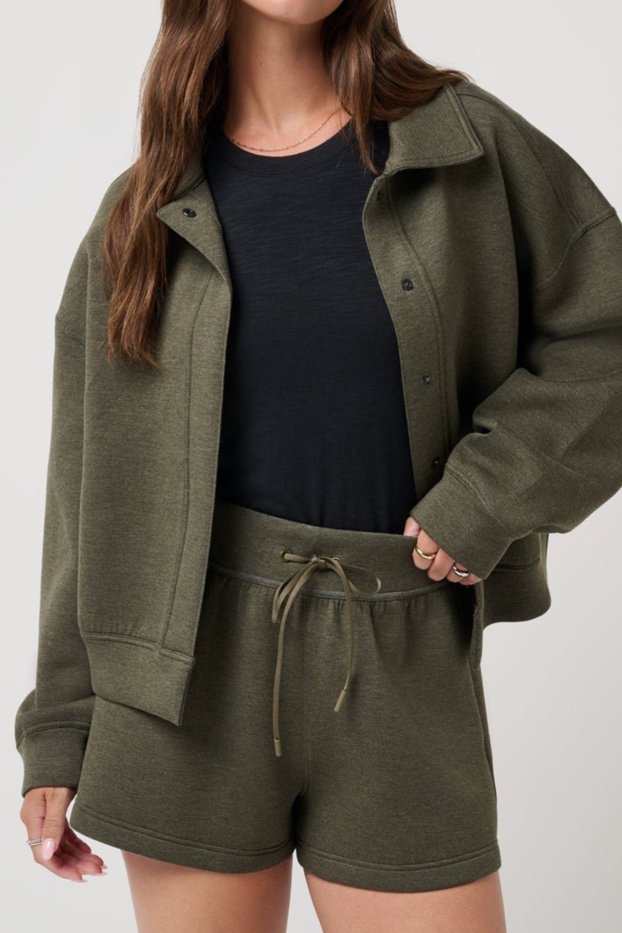 Experience the Cloudscape Button Down, crafted from soft yet structured scuba fabric for a luxurious feel. This versatile piece layers smoothly over both activewear and everyday outfits, making it an effortless addition to your wardrobe. Pair it with the Cloudscape Short for a coordinated look that combines comfort and style with ease.
