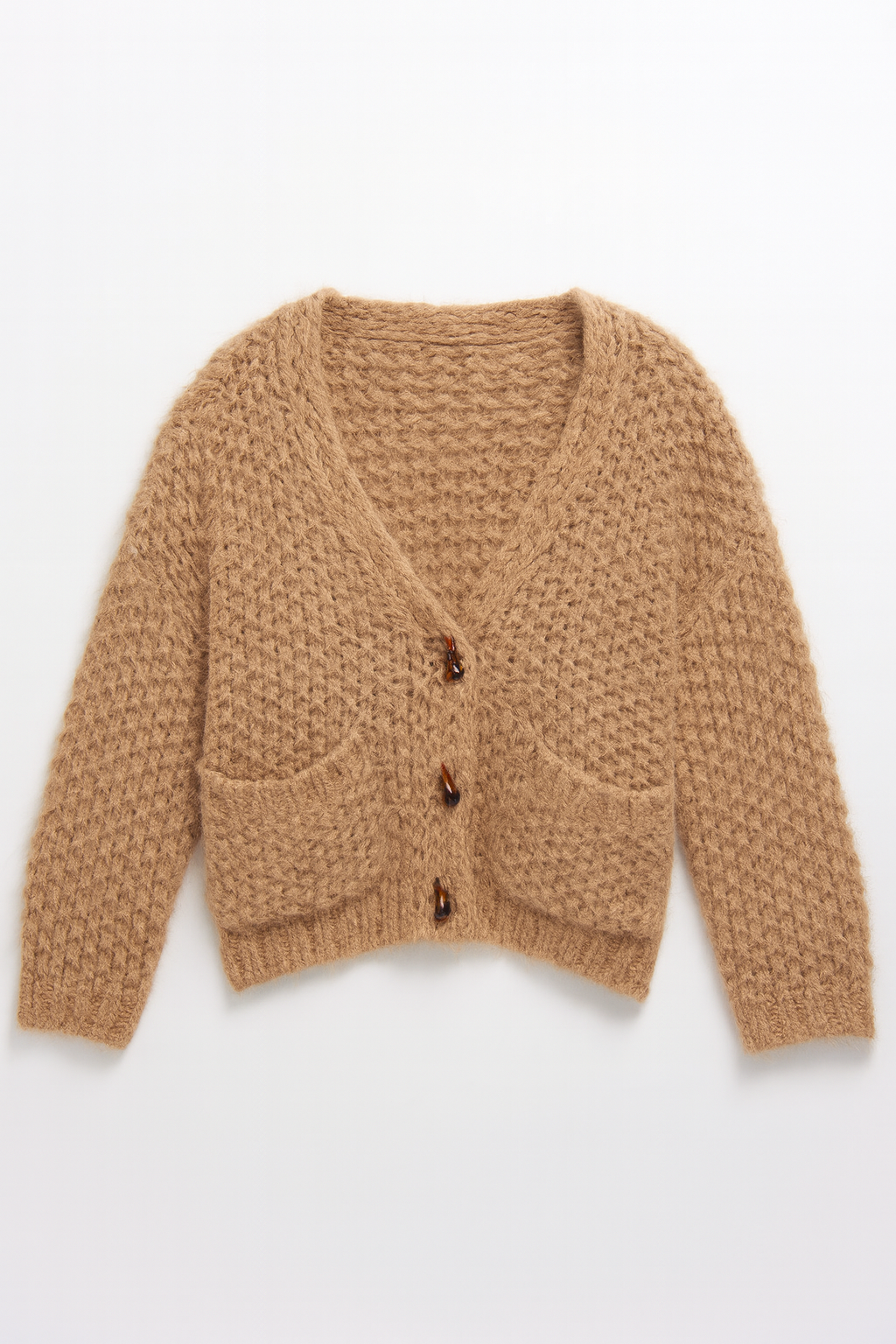 Experience cozy comfort with the Deja Chunky Knit Cardigan Sweater. Its relaxed fit and slightly oversized silhouette create a laid-back, easygoing vibe, while the open front with toggle button closures adds versatile style and practicality. Crafted from soft, fuzzy eyelash yarn, this textured knit feels plush against your skin. Featuring drop shoulders, long sleeves, and two front pockets, it blends casual ease with functional design. The subtle high-low hem and upper-hip length provide a flattering finish to all your favorite casual outfits.