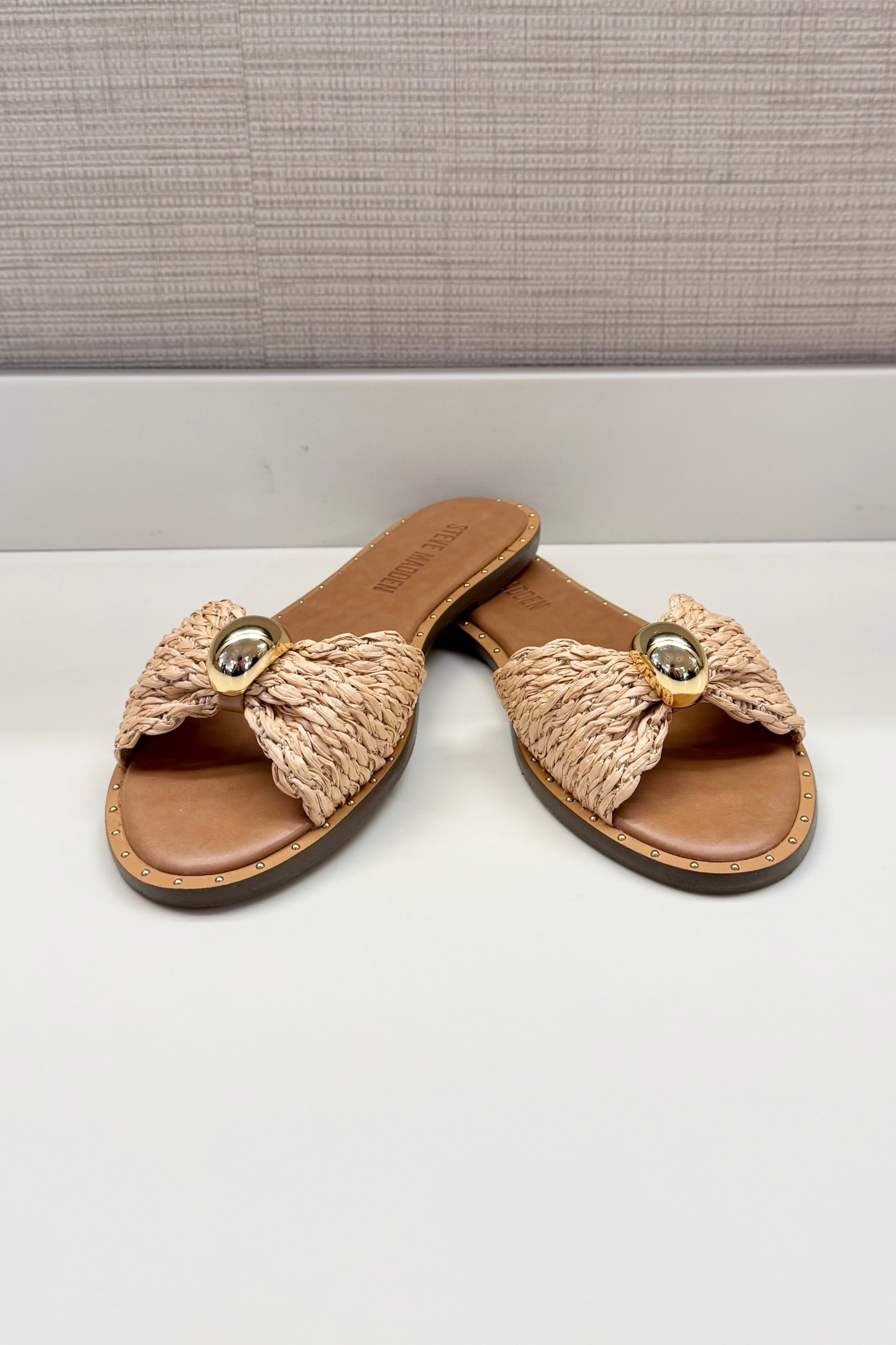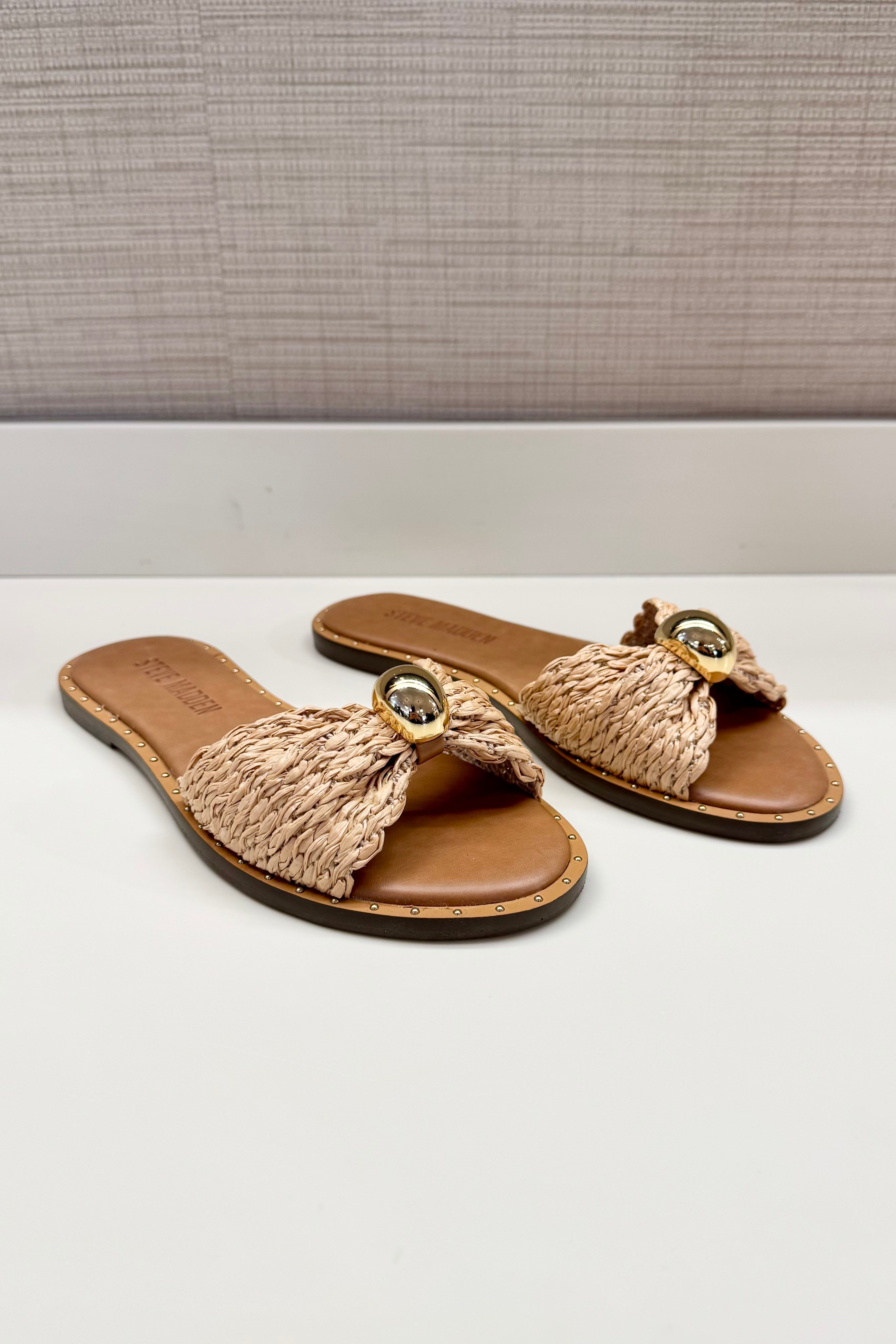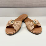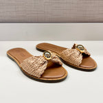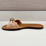 The Dipsy Natural Raffia Sandal blends style and comfort with its mini studs and rounded toe design. Crafted with a natural raffia upper, these sandals bring rustic charm to any outfit while offering practical wearability. Featuring a comfortable .5 inch heel, synthetic lining, sock, and sole, they ensure long-lasting comfort. These sandals are an easy choice to elevate your wardrobe with both fashion and function.