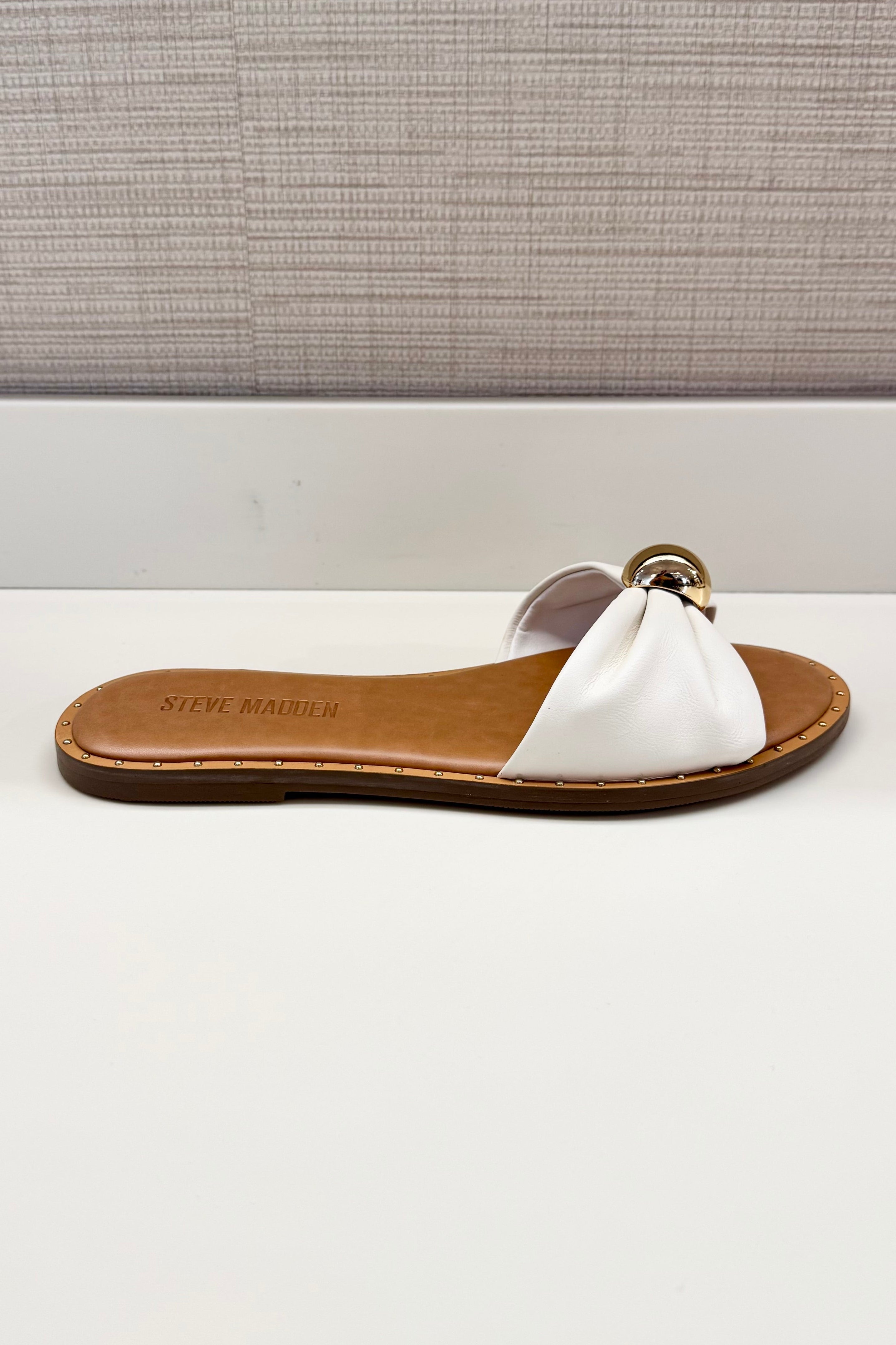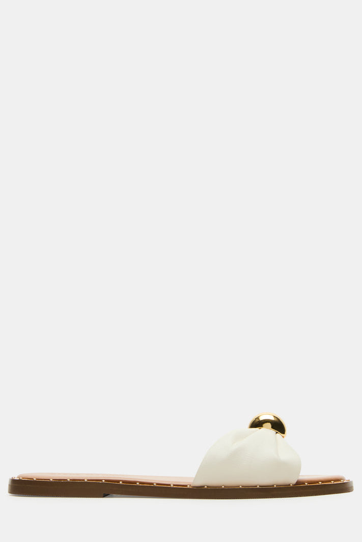The Dipsy White Leather Sandal combines style and comfort with its rounded toe and mini stud detailing. Crafted from leather with synthetic lining, sock, and sole, it offers durability and a touch of rustic charm. Featuring a modest 0.5-inch heel, these sandals are perfect for everyday wear. For the best fit, consider sizing up half a size if you’re between sizes. Ideal for adding effortless style and practicality to your wardrobe.