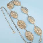 Gracelynn Flower Engraved Oval Concho Chain Belt