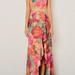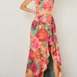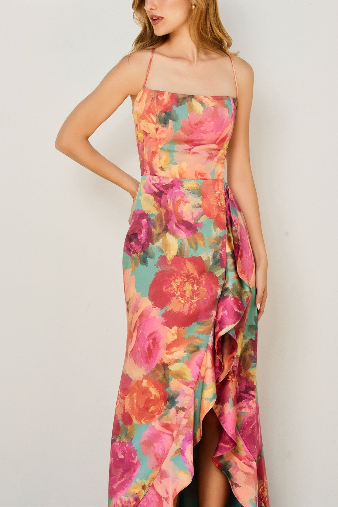 Romantic, radiant, and ready for every celebration — The Isabella Floral Satin Maxi Dress is made for those moments when you want to look effortlessly stunning. With its bold watercolor-inspired floral print and flattering corset-style bodice, this dress perfectly blends timeless elegance with a modern feminine touch. The soft satin fabric drapes beautifully, catching the light with every step, while the ruffled surplice slit adds just the right amount of movement and allure.