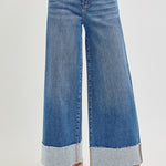 The Janie High Rise Crop Wide Cuffed Jeans offer a cute and trendy style with built-in tummy control for a smooth, flattering fit. Their high-rise cut pairs perfectly with your favorite blouse and sandals, creating a comfortable and confident look for any casual outing.