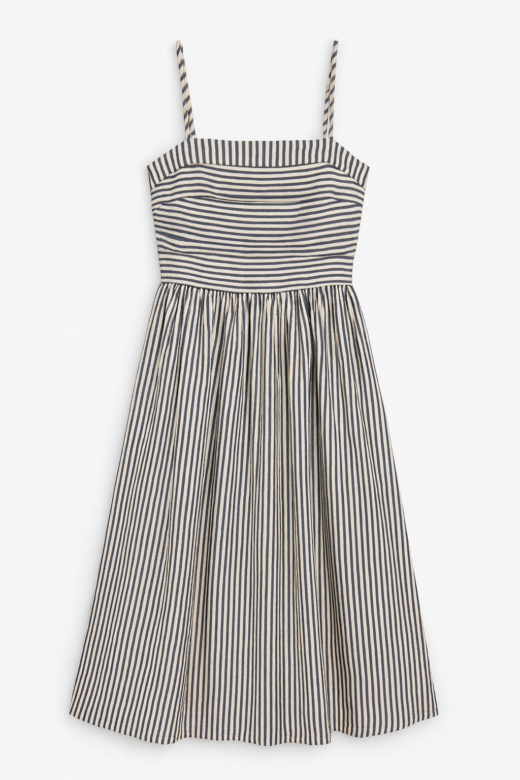 Justine Striped Fitted Ruched Bodice Midi Dress