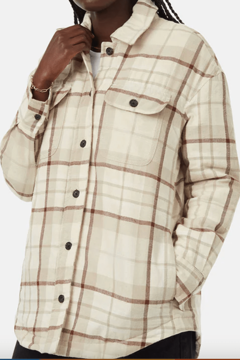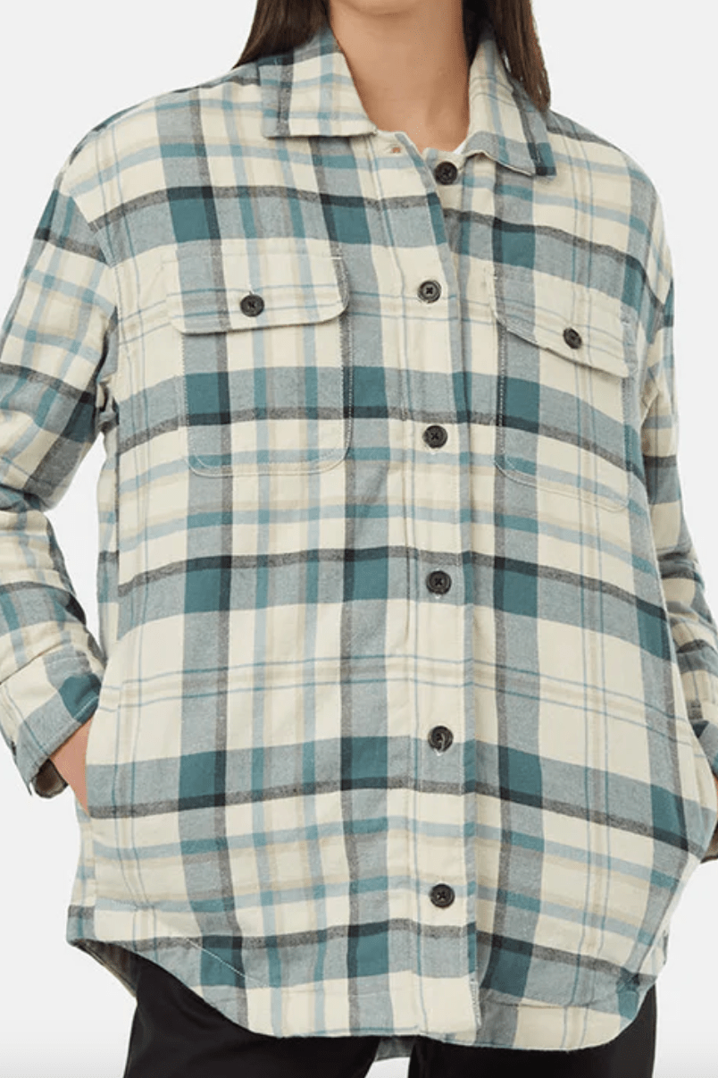 Shield yourself from autumn's cool temperatures with the Kapok Flannel Insulated Shacket. Made with biodegradable materials, it features a unique blend of 87% organic cotton and 13% kapok for maximum comfort and a minimal carbon footprint. Stay warm and stylish with buttoned chest pockets and a scoop hem.