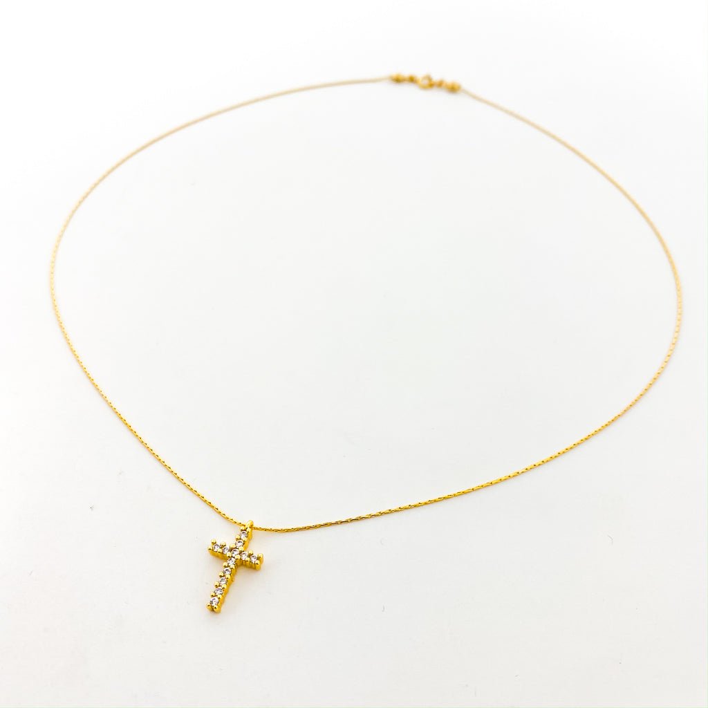 Katherine Hanging Rhinestone Cross Necklace | Smooth Chain | Gold