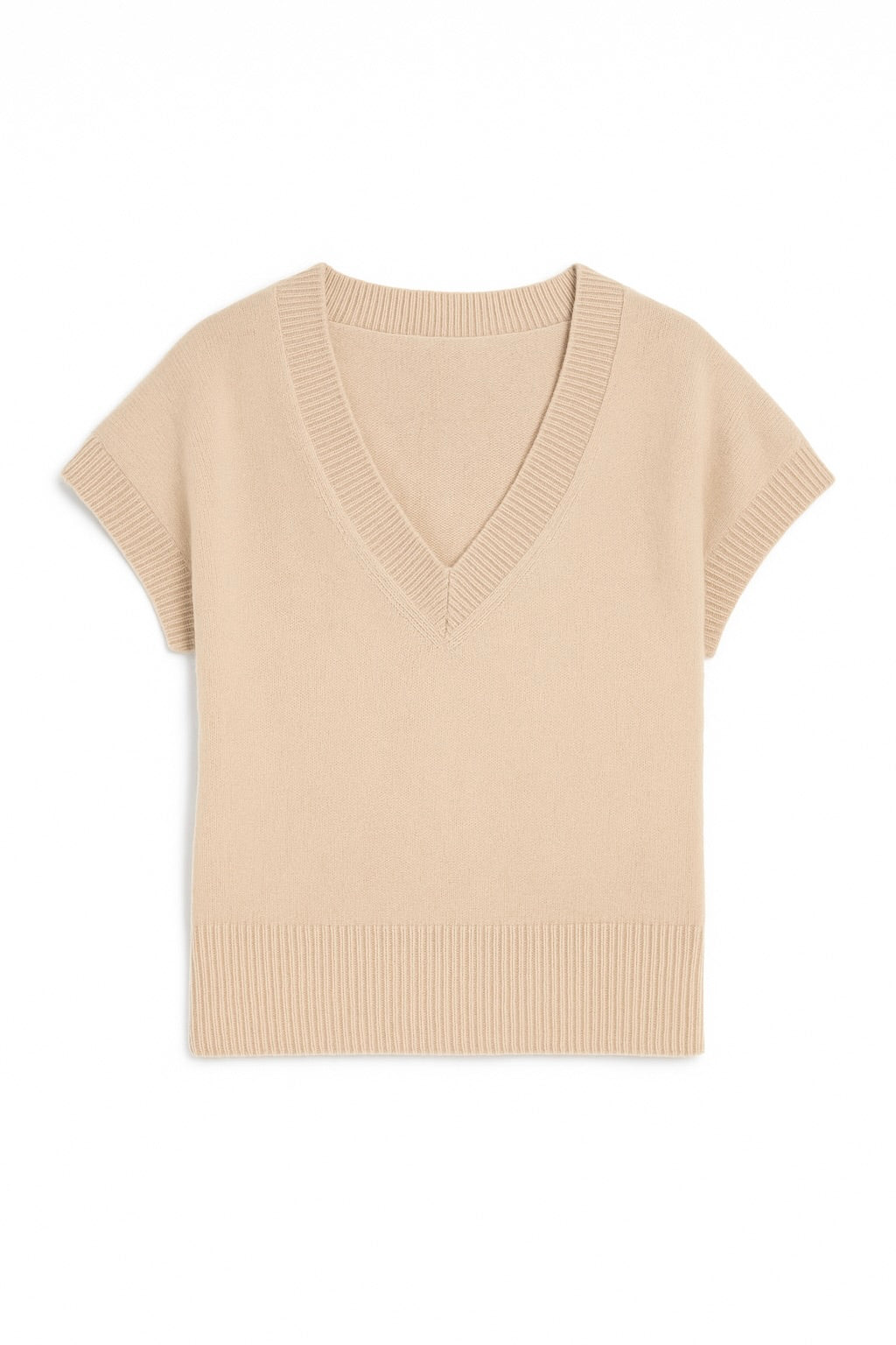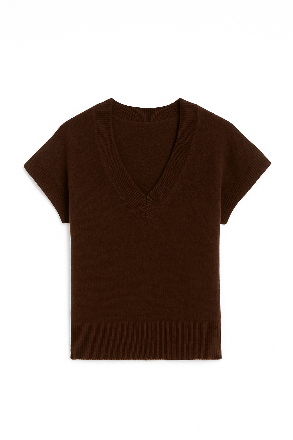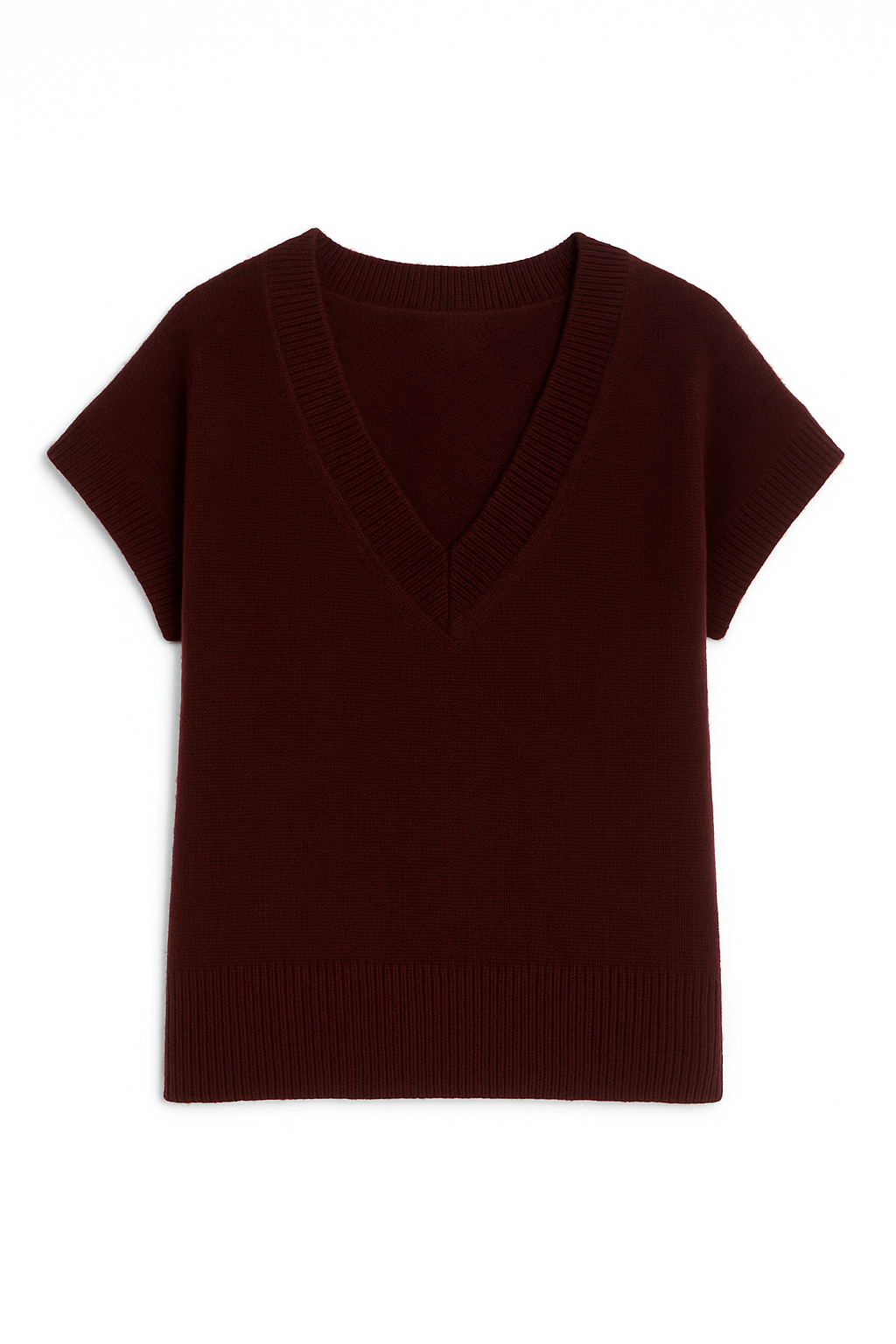 Soft, chic, and endlessly versatile — The Maeve V-Neck Knit Sweater Vest is your new layering essential for every season. Designed with a relaxed, slightly boxy fit and extended shoulders, this sleeveless pullover combines comfort and sophistication in one easy piece. The ribbed trim and clean V-neckline give it a polished look that pairs beautifully with everything from tailored trousers to casual denim.