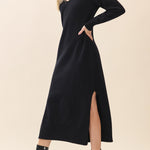 The V-neckline and long sleeves bring a feminine touch to this timeless silhouette, while side slits add subtle movement and modern ease. Crafted from a midweight sweater knit, Margo offers that perfect balance of softness and structure—making it just as easy to style with sneakers for errands as it is with heeled boots and gold jewelry for dinner.