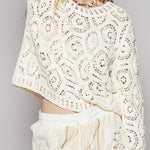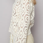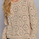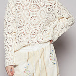 This Margot Open Knitted Crochet Solid Sweater features a comfortable round neck and long sleeves, skillfully crafted from knit crochet fabric with a stone-washed finish. Its solid color design makes it a versatile addition to your wardrobe, perfect for layering or wearing on its own for casual, cozy style.