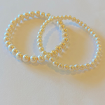 The Melanie Pearl Bracelet Set features two elegant bracelets crafted with lustrous pearls measuring 4mm and 6mm. Perfect for layering or wearing separately, these bracelets add a timeless touch to any outfit. Their classic design complements both casual and formal styles, offering versatile wear that enhances your everyday look with subtle sophistication.