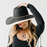 Stay stylish and protected under the sun with our Miami Summer Wide Floppy Sun Hat. Available in classic black and tan, this hat features a charming chain trim with a tassel, adding a touch of elegance to your summertime look. Its wide brim offers excellent sun coverage, helping you feel confident and comfortable all day long. Perfect for beach days, outdoor events, or casual strolls, this hat is your go-to accessory for embracing summer with sass and grace.