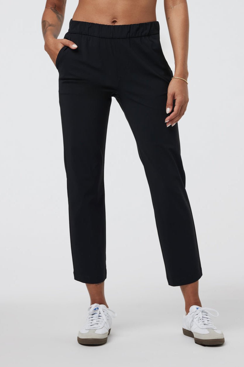 The Miles Ankle Pant is your perfect companion for daily excursions. Made with recycled, breathable performance stretch knit, and featuring a mid-rise, elastic waistband, slash pockets, and a tapered leg, you'll be comfortable and prepared for any adventure.