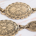 Elevate your wardrobe with this stunning Ornate Oval Western Concho Disc Chain Belt, where timeless western aesthetics meet contemporary style. The intricate oval concho disc detailing creates an eye-catching focal point that transforms any outfit from ordinary to extraordinary. Crafted for those who refuse to compromise, this belt seamlessly blends luxurious design with everyday wearability. Whether you're dressing up for a special occasion or adding flair to casual wear, this statement piece delivers the perfect balance of functionality and fashion-forward appeal. Make a bold impression with a belt that speaks to your refined taste.