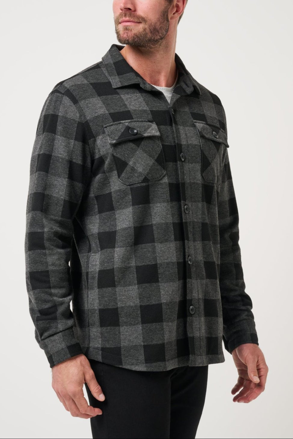 Shacket energy, button-up polish. RETURN FLIGHT is made from an ultra-soft, midweight plaid with just enough stretch to move with you. Layer it up or wear it solo—it’s the kind of piece that works just as well at dinner as it does at drinks.