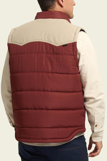 Saddle up with the Rounder Vest and never let the cold drift in. Its western styling and Primaloft® insulation keeps you warm while the water resistant shell keeps you dry. With Howler heritage snaps and a vintage collar, this vest offers both style and practicality. Don't let winter round you up, stay warm and stylish with the Rounder!