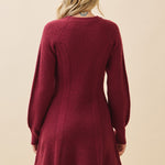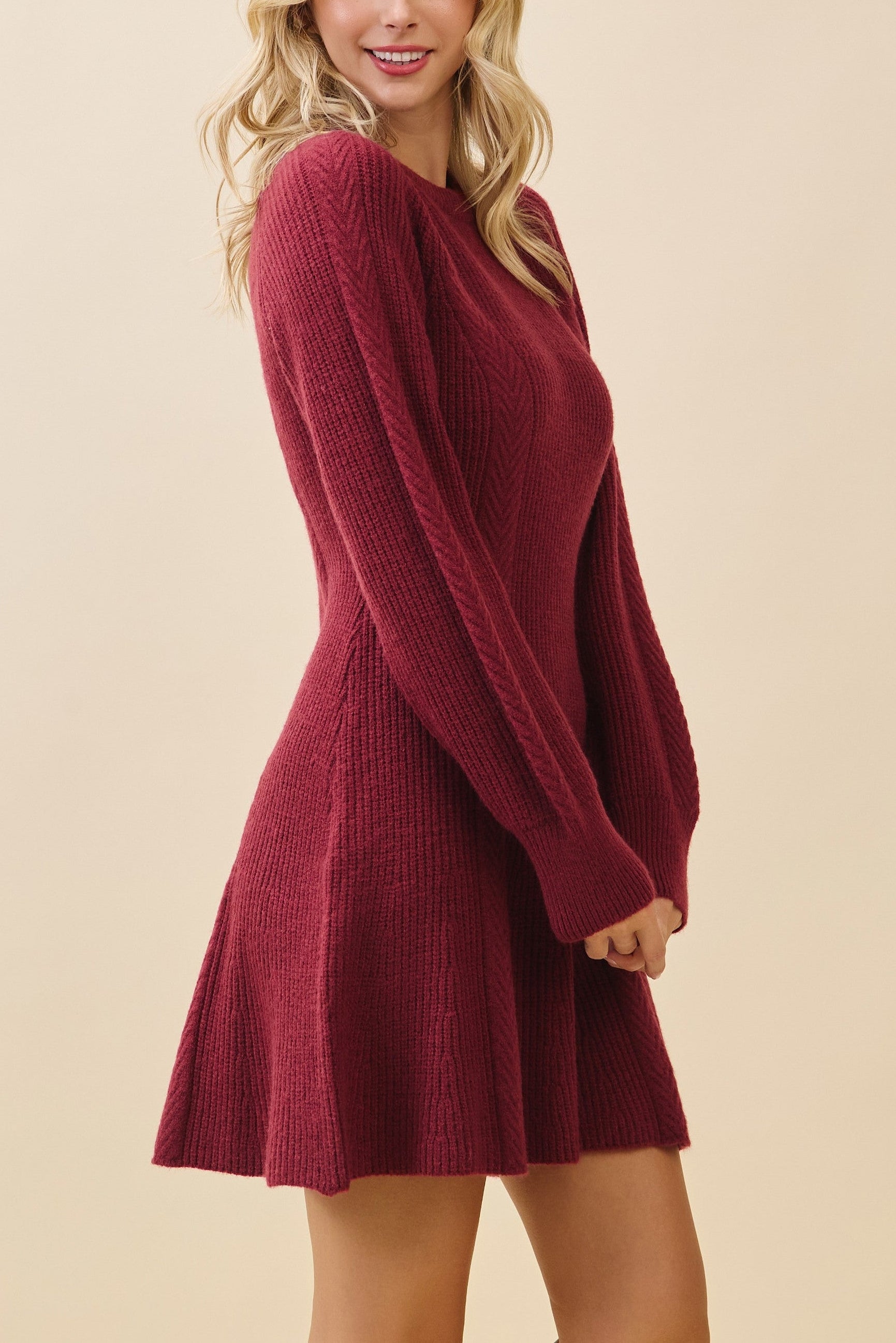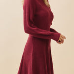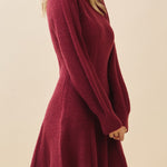 Sweet meets sophisticated in the Rowan Fit & Flare Sweater Dress in Wine. This soft, ribbed knit dress is designed with a flattering A-line silhouette that skims the body and flows effortlessly for a feminine finish. The crew neckline and long sleeves make it perfect for cooler days, while the subtle cable knit detailing adds just the right amount of texture and charm.