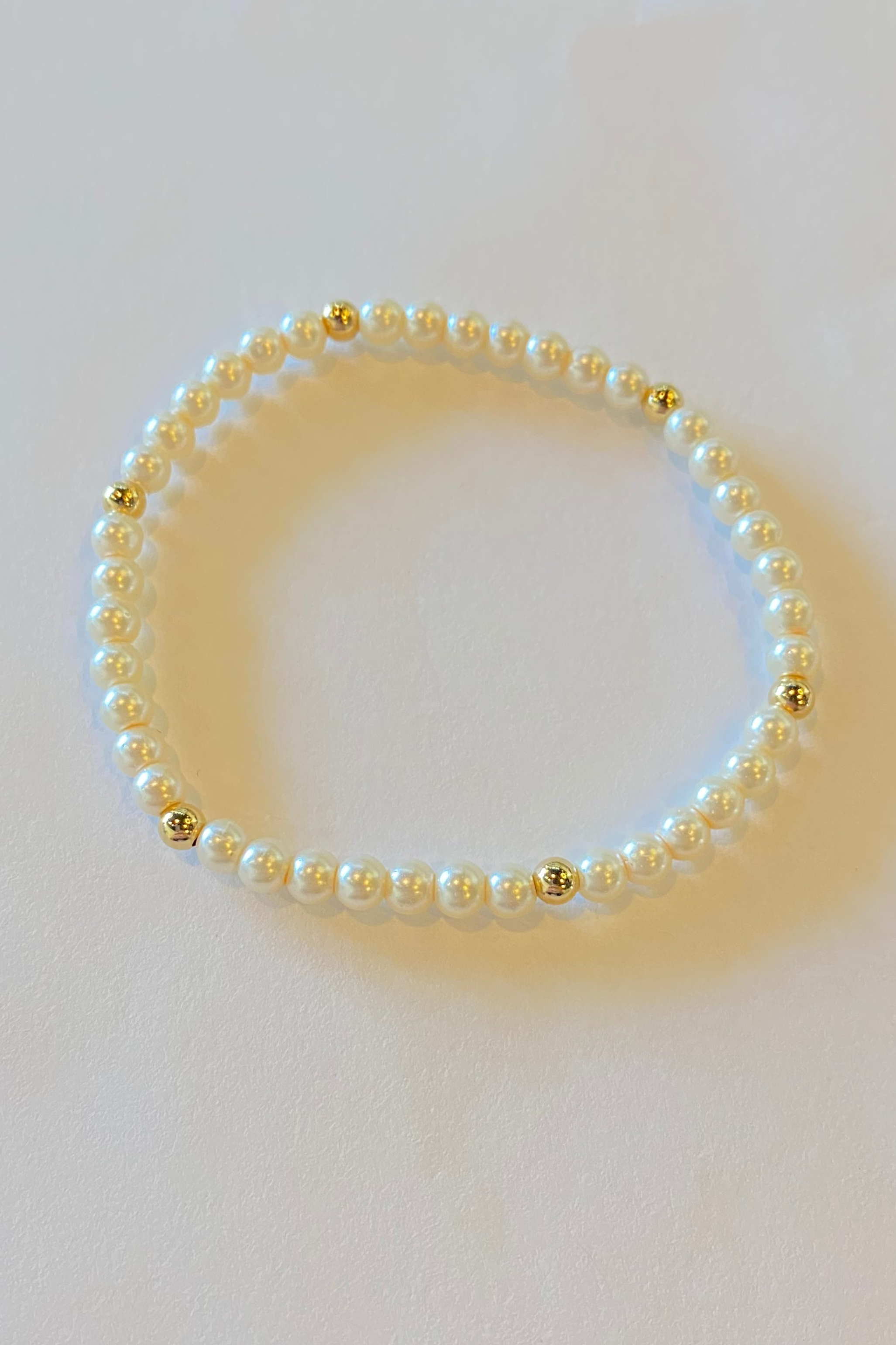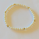 This Sally Accented Pearl Bracelet features delicate 4mm pearls beautifully complemented by 4mm gold-filled bead accents. Its subtle elegance makes it a versatile accessory that adds a touch of sophistication to any outfit while remaining comfortable for everyday wear. Perfect for those who appreciate understated, classic jewelry with a refined finish.