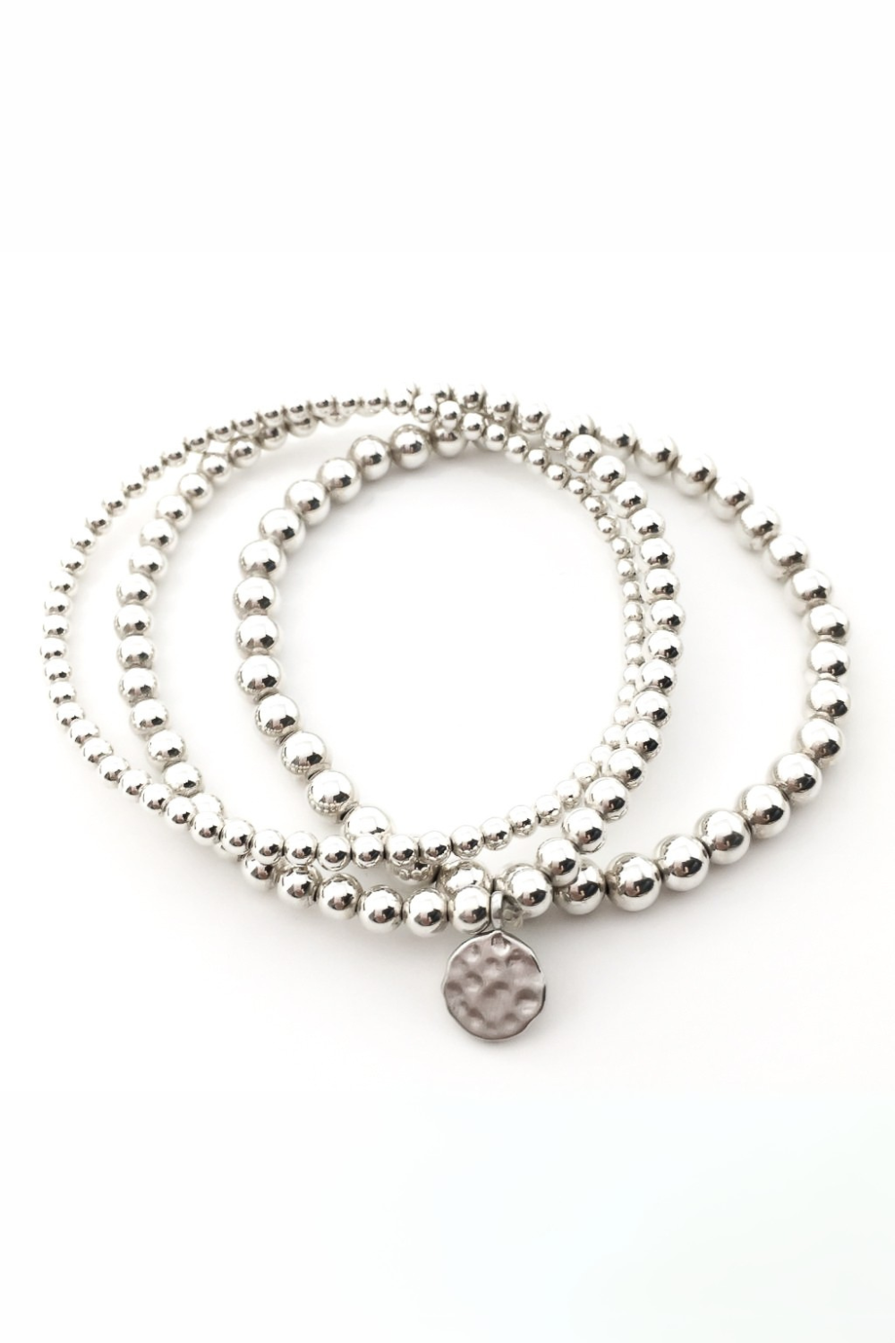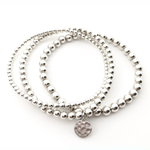 They also come in a variety of bead sizes. Our recommendation is to mix a few different sizes to build a stack.  The 4mm Beaded Bracelet can also come with a textured Vermeil charm which adds such a beautiful touch to the bracelet.
