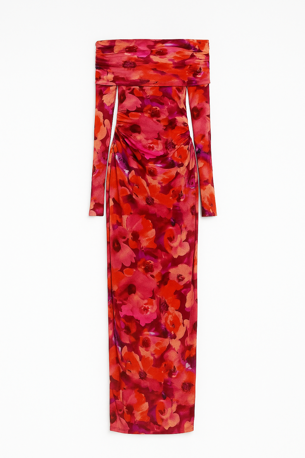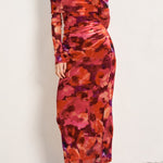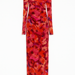 Make an unforgettable entrance in The Sienna Off-Shoulder Mesh Midi Dress — a figure-flattering statement piece that blends bold color with timeless femininity. The vibrant floral print in rich reds, pinks, and purples creates a romantic yet confident vibe, while the foldover off-the-shoulder neckline adds just the right touch of sophistication.