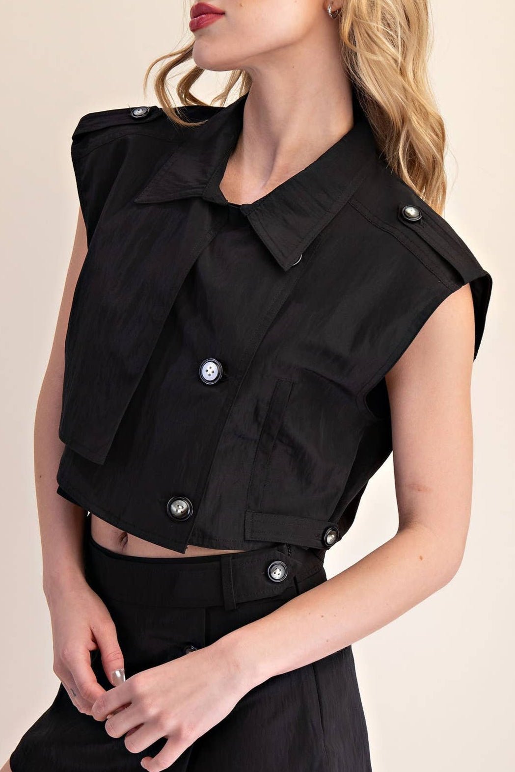 Teresa Lapel Collar Sleeveless Crop Jacket - MTT Collective