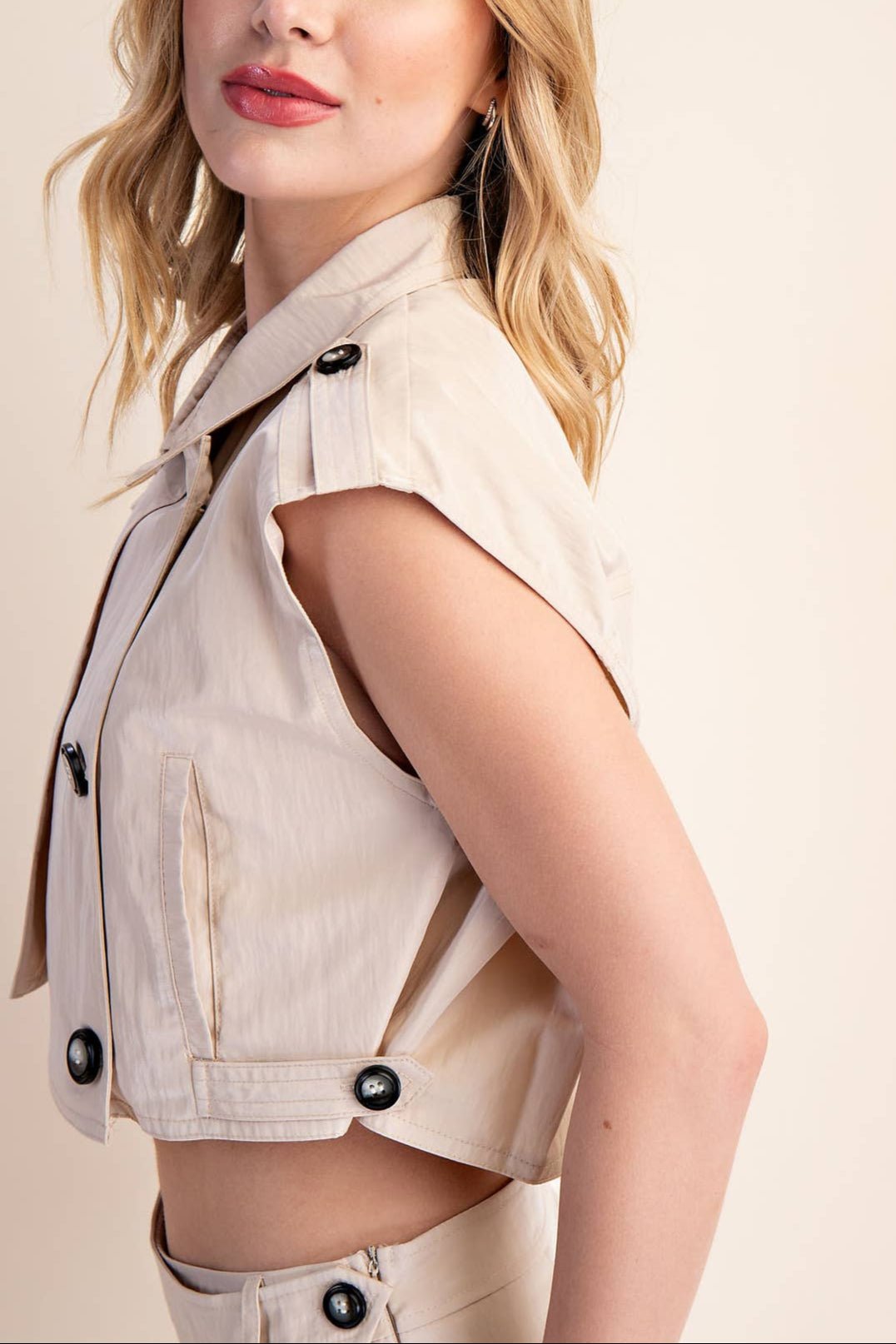 Teresa Lapel Collar Sleeveless Crop Jacket