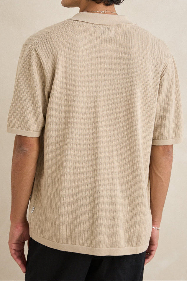 Effortlessly elevate your everyday wardrobe with the Textured Knit Short Sleeve Shirt. Crafted from soft textured cotton knit, this versatile piece features a refined knitted rib collar and button-through front for easy styling. The straight hem and standard fit create a polished silhouette that works for any occasion, while Rhythm labels and trims add an authentic finishing touch. A reliable essential that bridges casual comfort with understated sophistication.