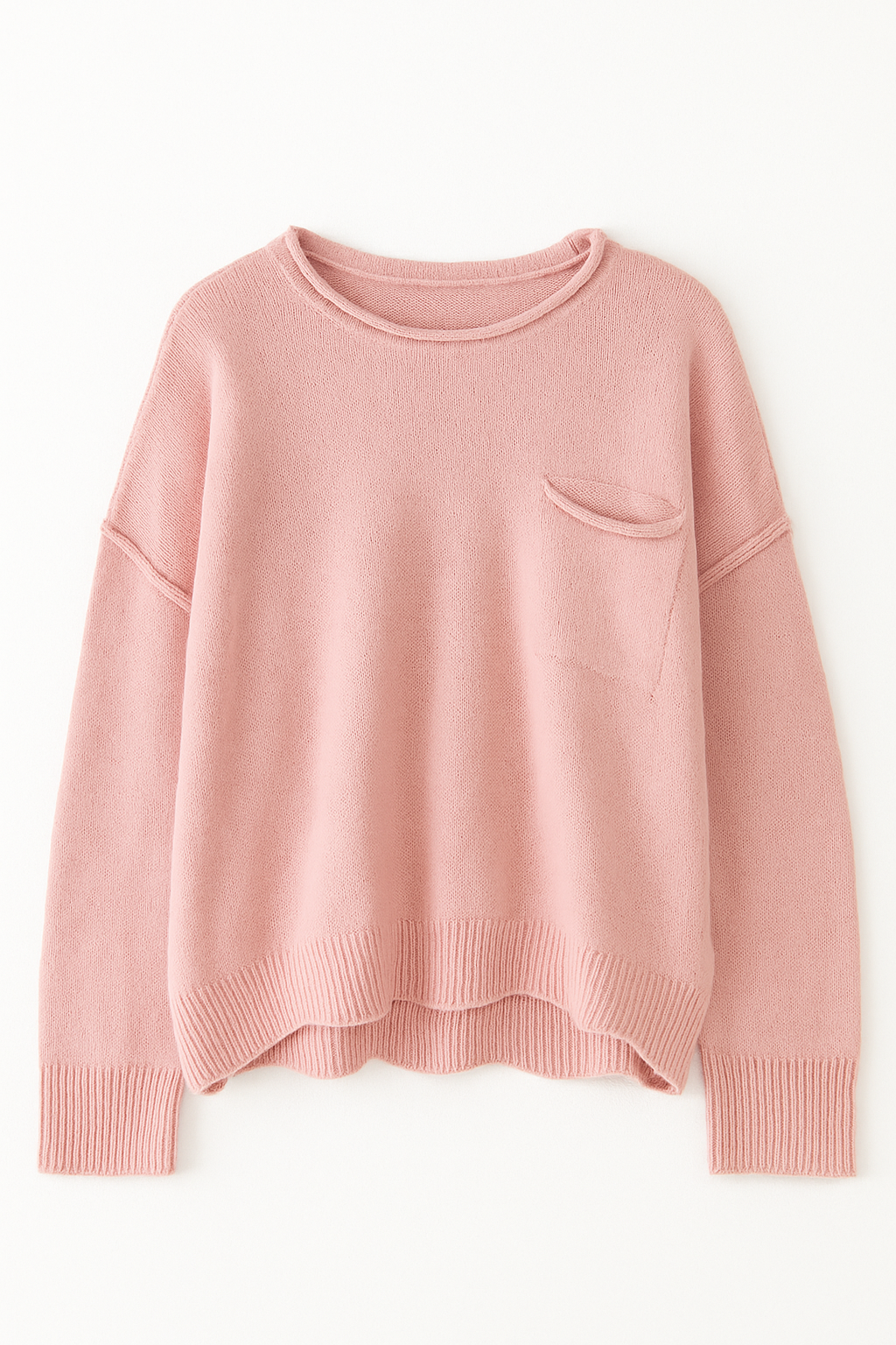 Soft, relaxed, and effortlessly feminine — The Clara Scallop Pocket Sweater is the cozy-chic piece your wardrobe has been waiting for. With a slightly cropped fit, drop shoulders, and a playful scalloped hem, it’s that perfect mix of comfy and polished that every busy woman needs. The oversized chest pocket and subtle reverse-stitch details give it a touch of casual edge, while the lightweight knit keeps it breathable and easy to layer from fall through winter.