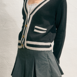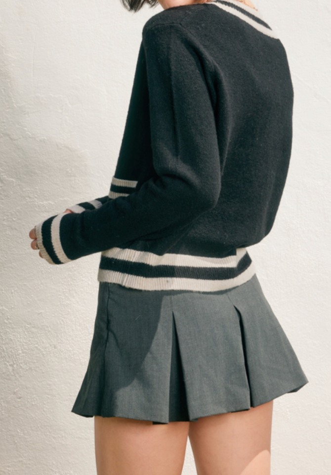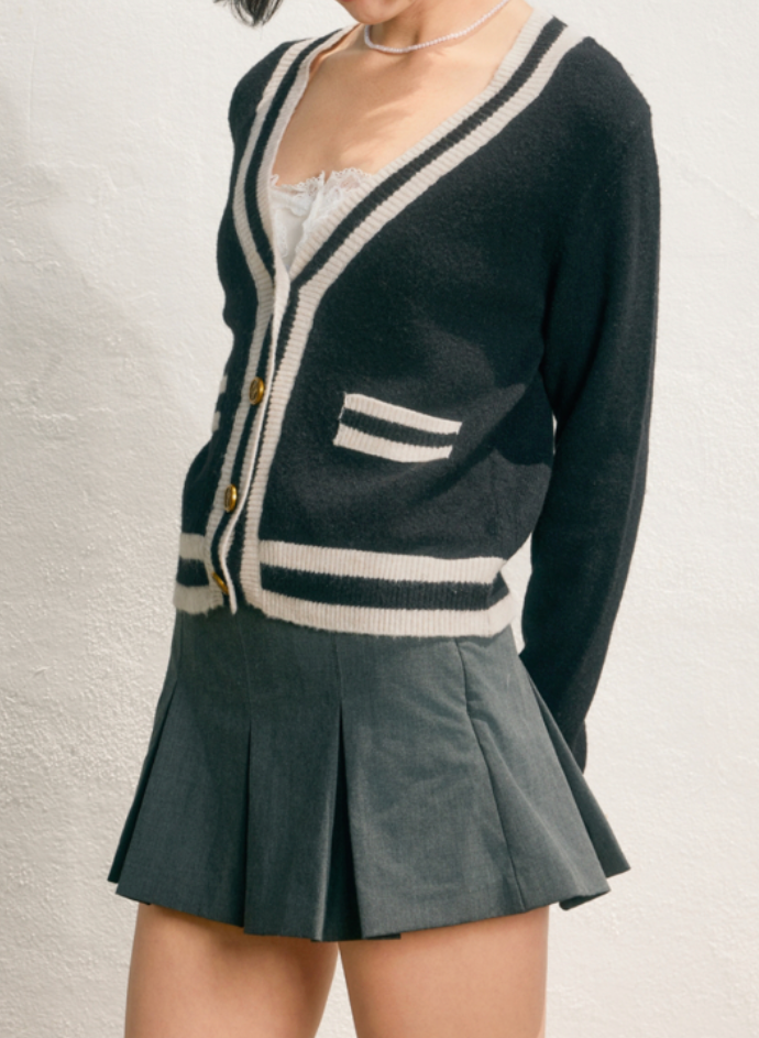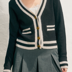 The Victoria Elite V Neck Cardigan is a timeless layering piece. Its elegant deep V neckline and distinctive stripe ribbing create a refined aesthetic, while button closures offer easy wear. The cropped silhouette hits just above the waist, providing a polished proportion that works seamlessly with high-waisted bottoms. Made from a durable blend of polyester, acrylic, wool, and spandex, this unlined cardigan delivers comfort without bulk. An essential addition to your fall wardrobe.